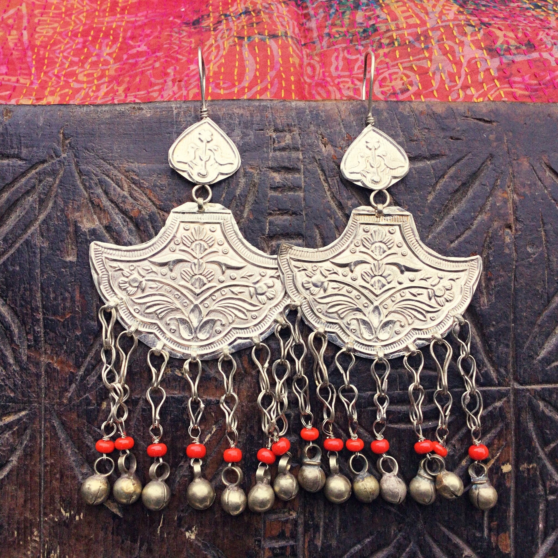 Große silberne orientalische Ohrringe mit Glöckchen, Boho ethnische tribal gypsy folkloristische Ohrringe, Festival Schmuck bohemian hippie 𖣴 Höhe: ca. 8 cm Metall, rotes Glas, Afghanistan 𖣴 Bitte beachten Sie: Die auf dem Bildschirm angezeigten Farben können leicht von dem physischen Produkt abweichen. Aufgrund von Unterschieden in der Kalibrierung der Bildschirme, der Umgebungsbeleuchtung und technologischen Grenzen ist es möglich, dass die wahrgenommenen Farben leicht von denen des tatsächlichen Produkts abweichen. Alle unsere Fotos werden bei natürlichem Licht und im Freien aufgenommen. Wir empfehlen Ihnen, dies beim Kauf zu berücksichtigen. 𖣴 Kostenloser, sicherer Versand in ganz Frankreich mit Sendungsverfolgung innerhalb von 1 bis 3 Werktagen, sorgfältige Verpackung 𖣴