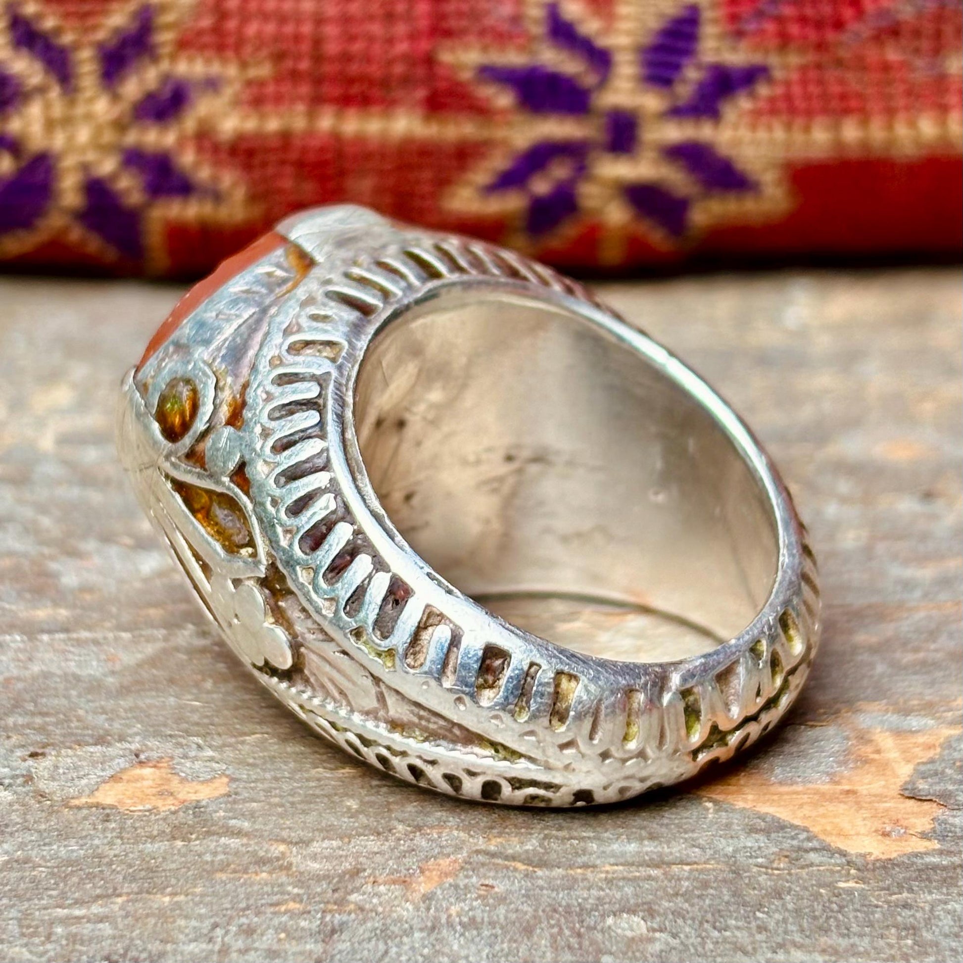 Große Herrenring Silber Achat Intarsie Afghanistan, Islamischer arabischer orientalischer asiatischer antiker Ring, Aqeeq Schutz bösen Blick
