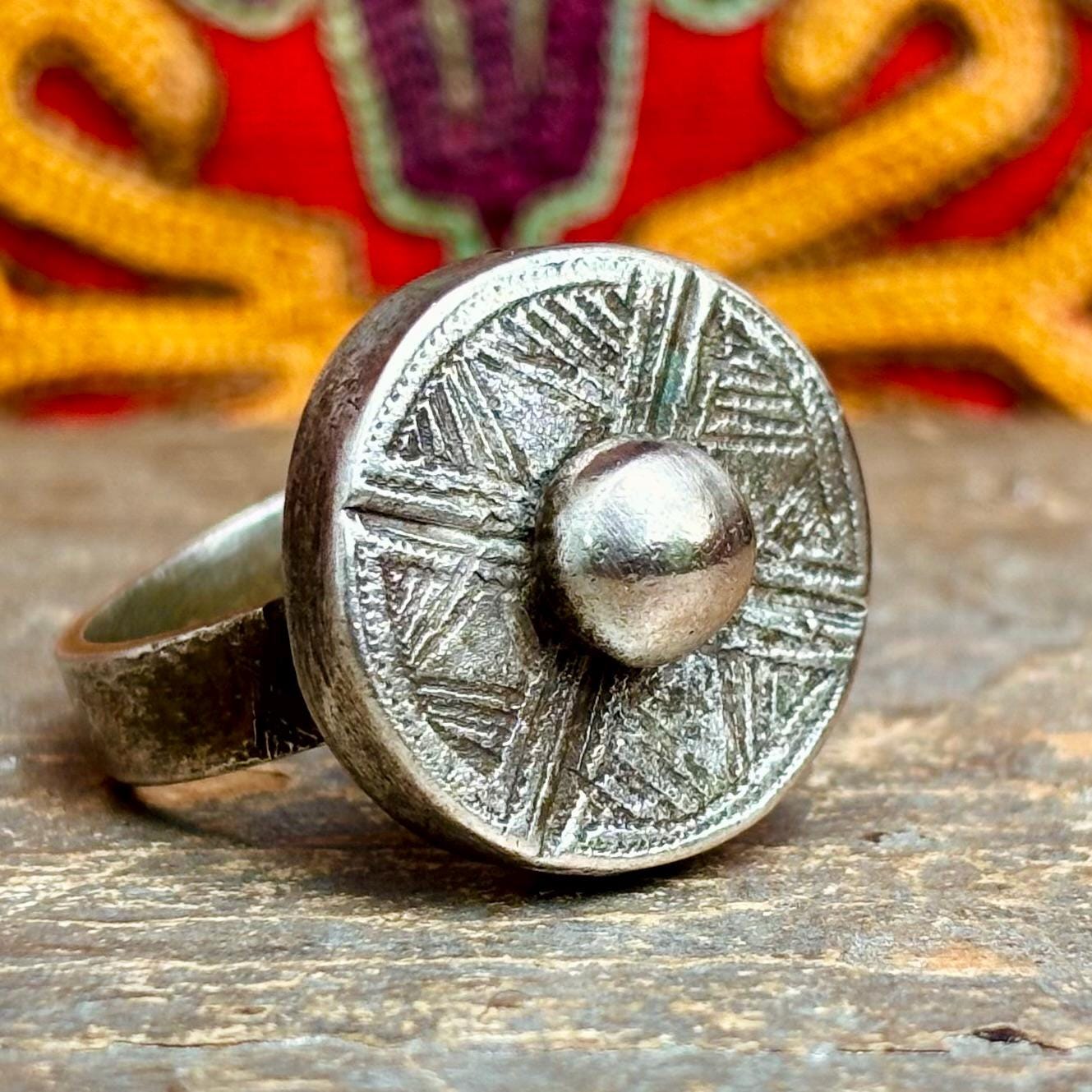 Bague Touareg ancienne argent ronde - Bijou tribal Sahara - Bague antique minimaliste Atlas