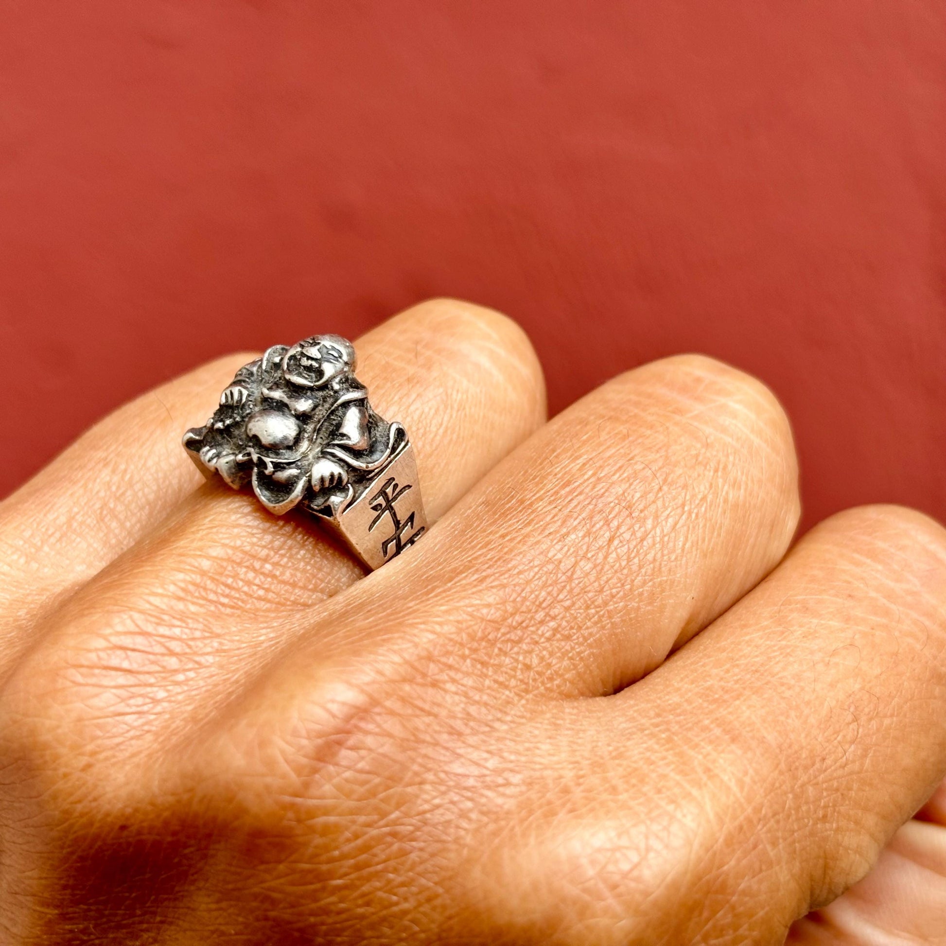 Bague Bouddha, Bague argent réglable, Bague Chinoise, Bijoux vintage, Bague Tribale Orientale Hippie Boho Bouddhiste Asiatique Bu Dai