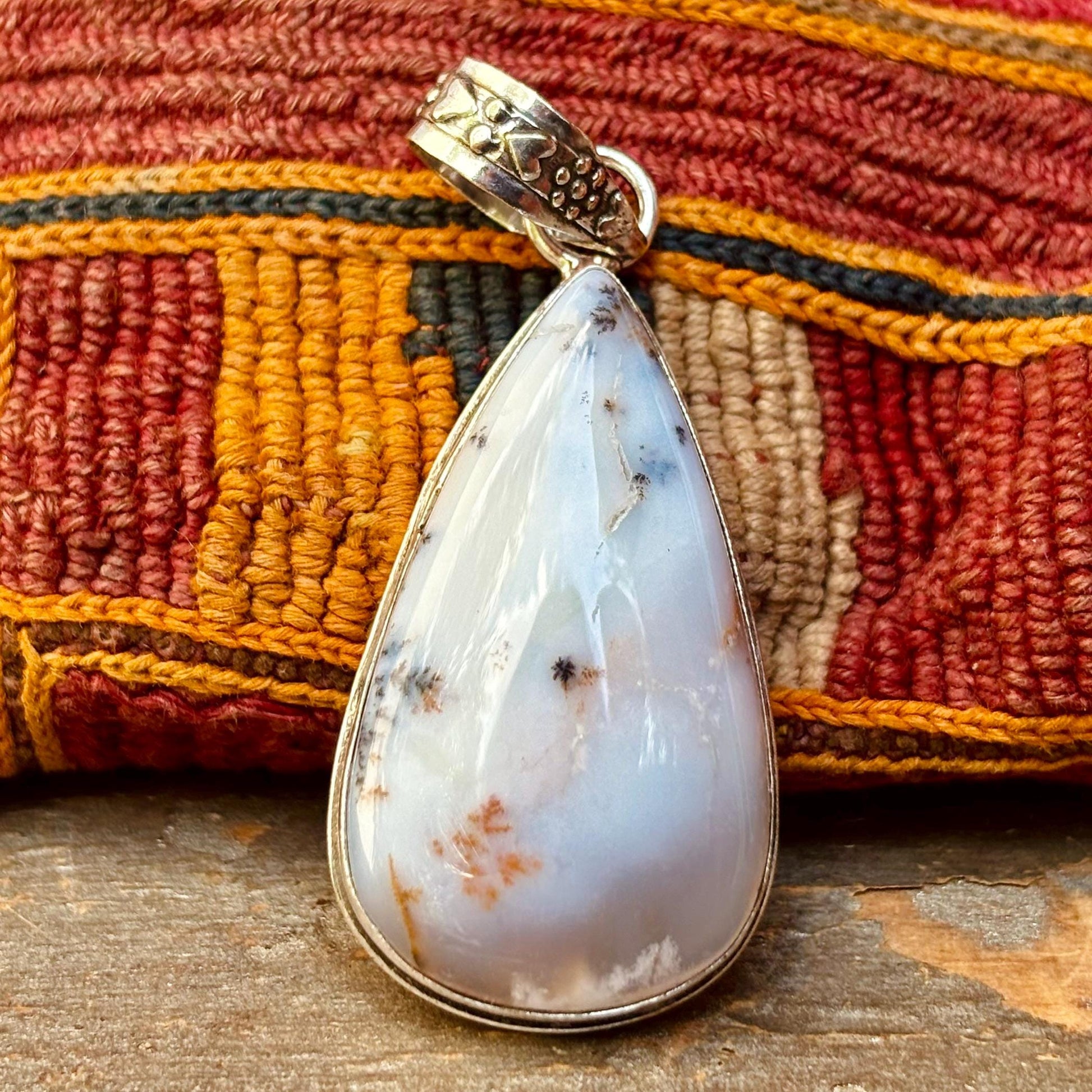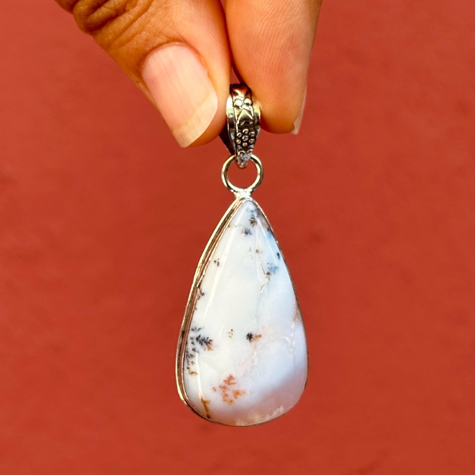Pendentif opale dentrite, Goutte opale dendrique argent 925, Pendentif pierre naturelle, Bijou pierre précieuse, Pendentif pierre blanche