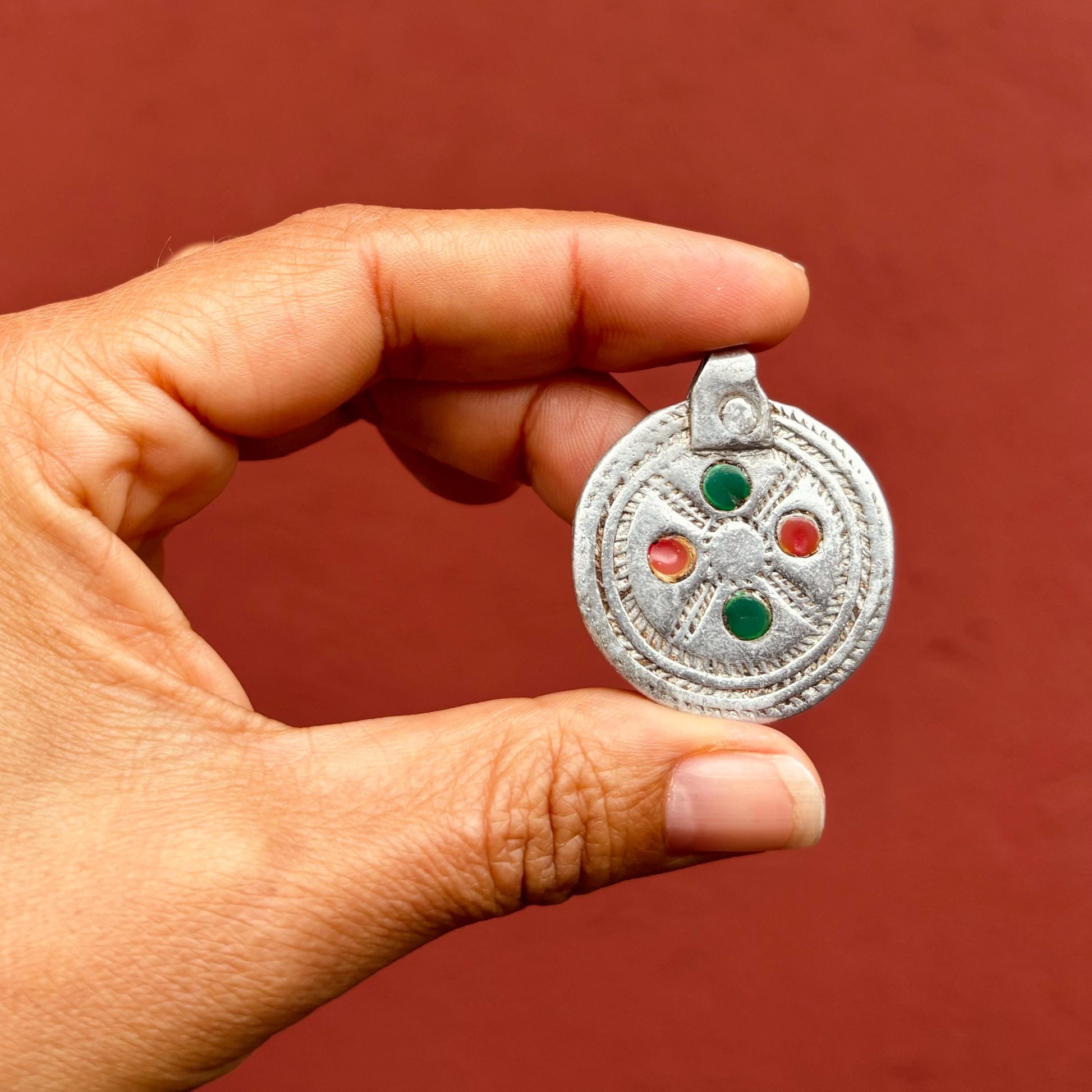 Pendentif rond aluminium vintage, Pendentif ancien métal Ethiopie africain, Antiquités Ethiopie Amulette Talisman, Bijou ethnique tribal