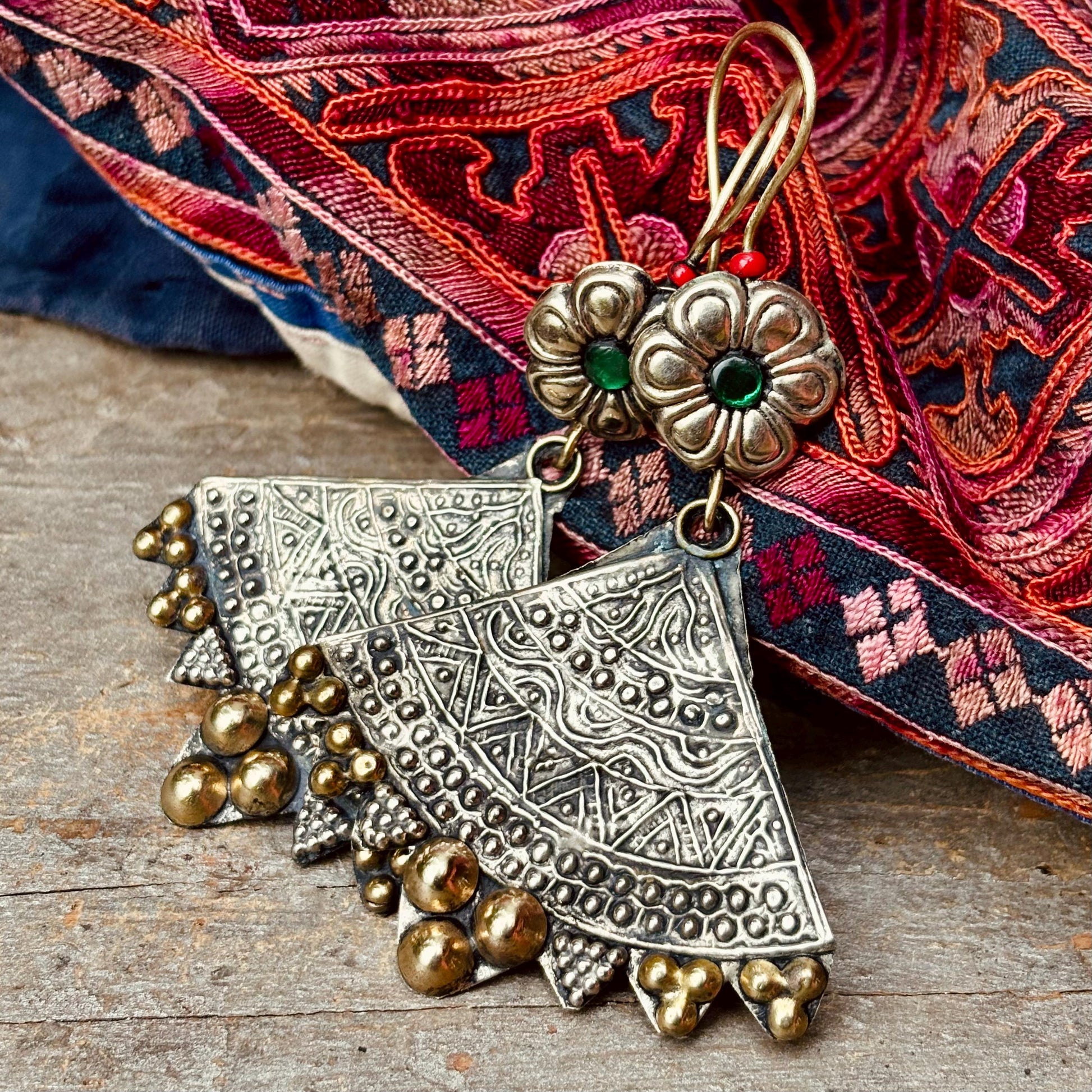 Pendientes étnicos tribales boho, Joyas de tribus nómadas de Afganistán, Pendientes orientales folclóricos festival bohemio