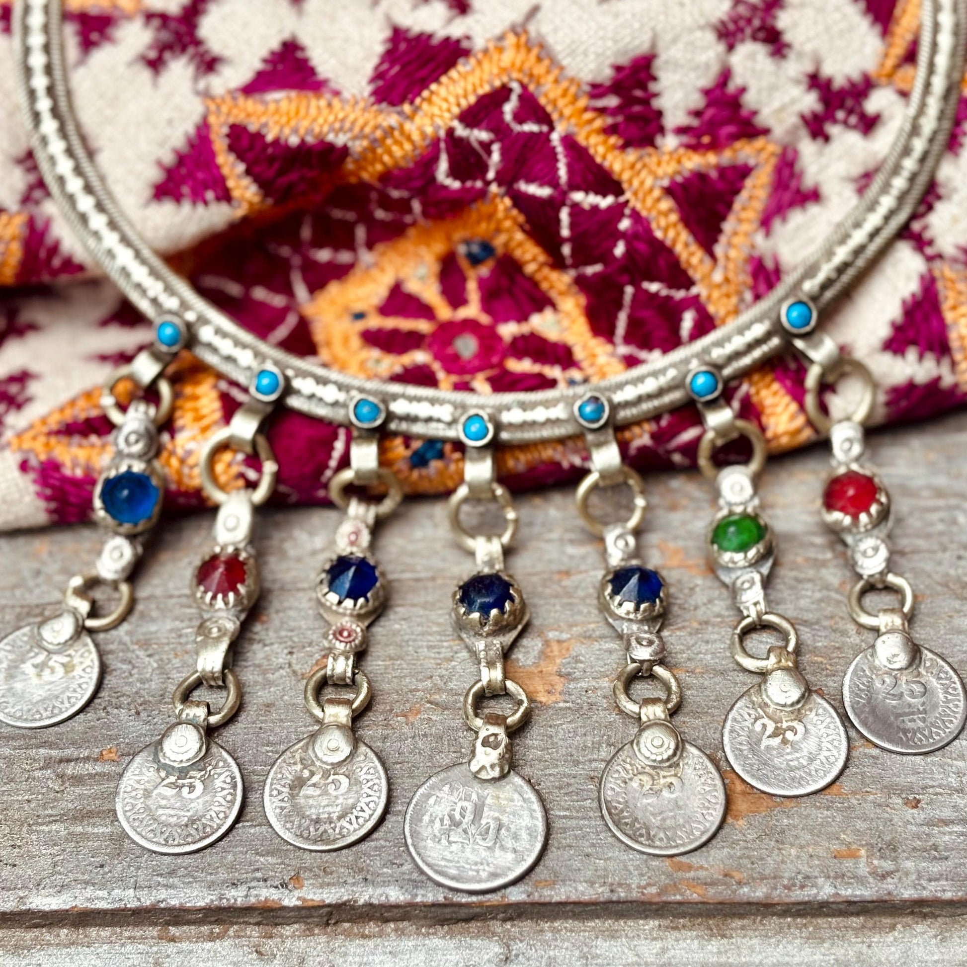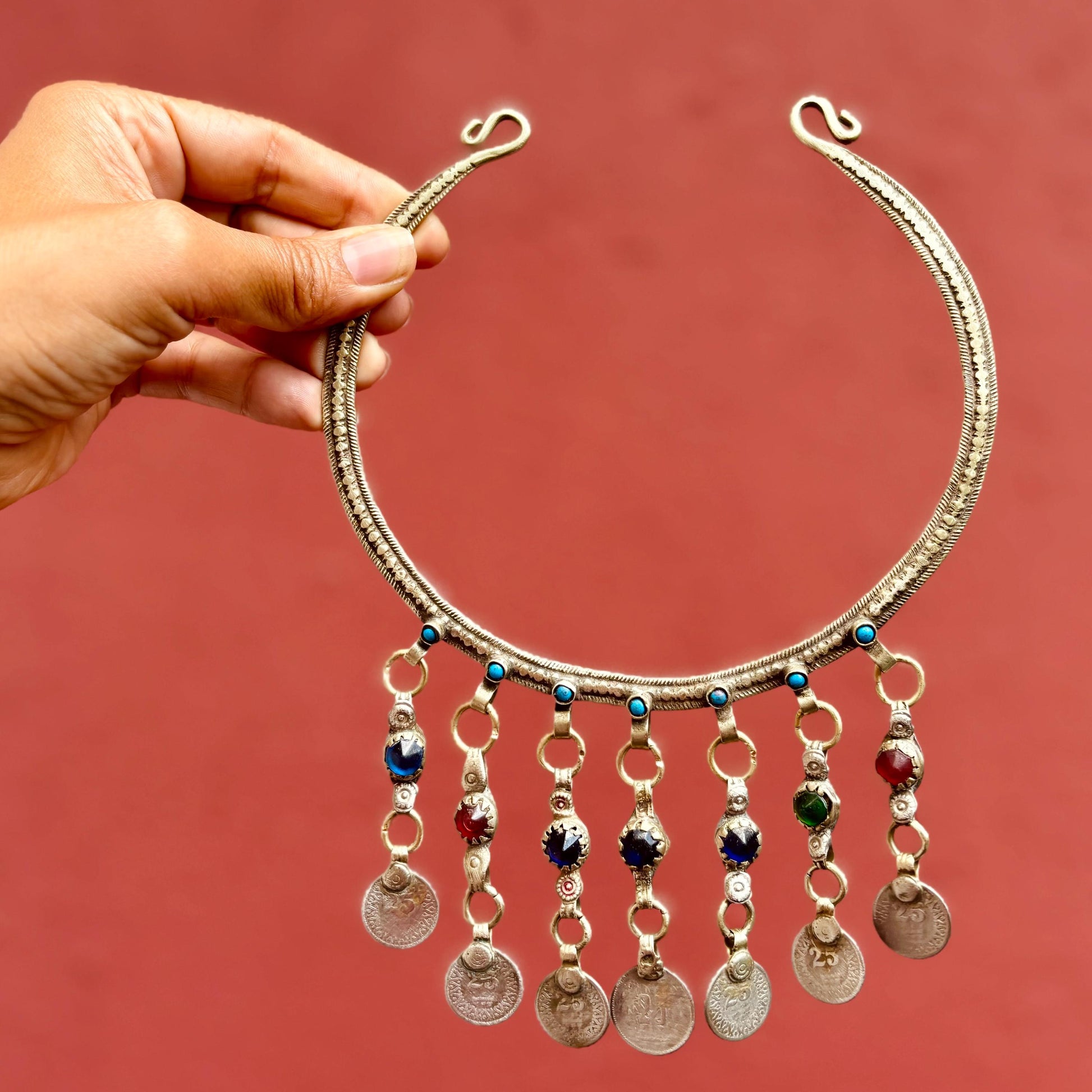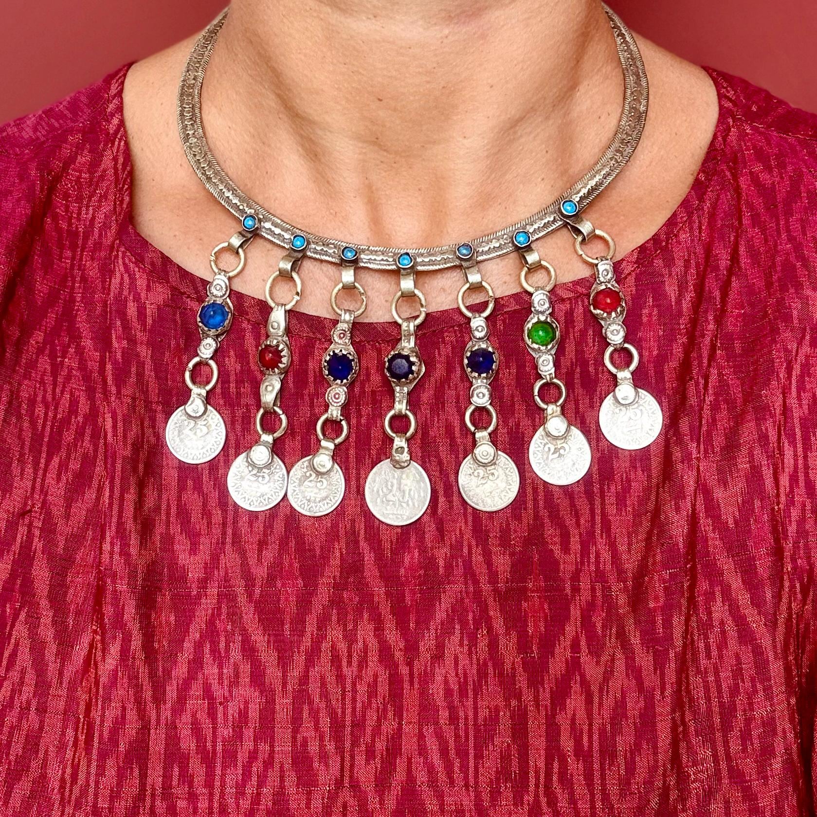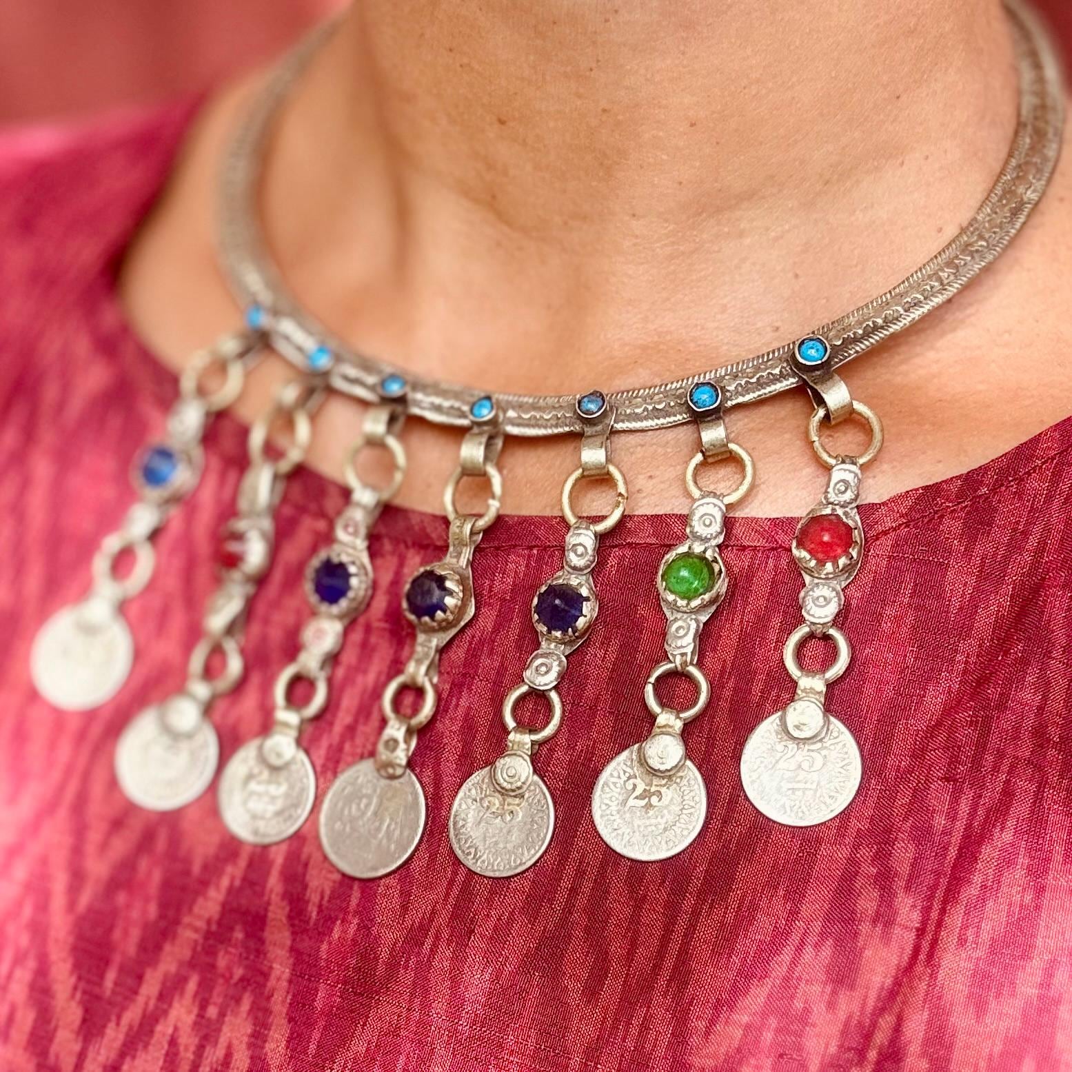 Collar rígido tipo torque plateado, estilo boho tribal, collar gargantilla afgano, tribu nómada, étnico, hippie, gitano, estilo oriental tribal fusión.