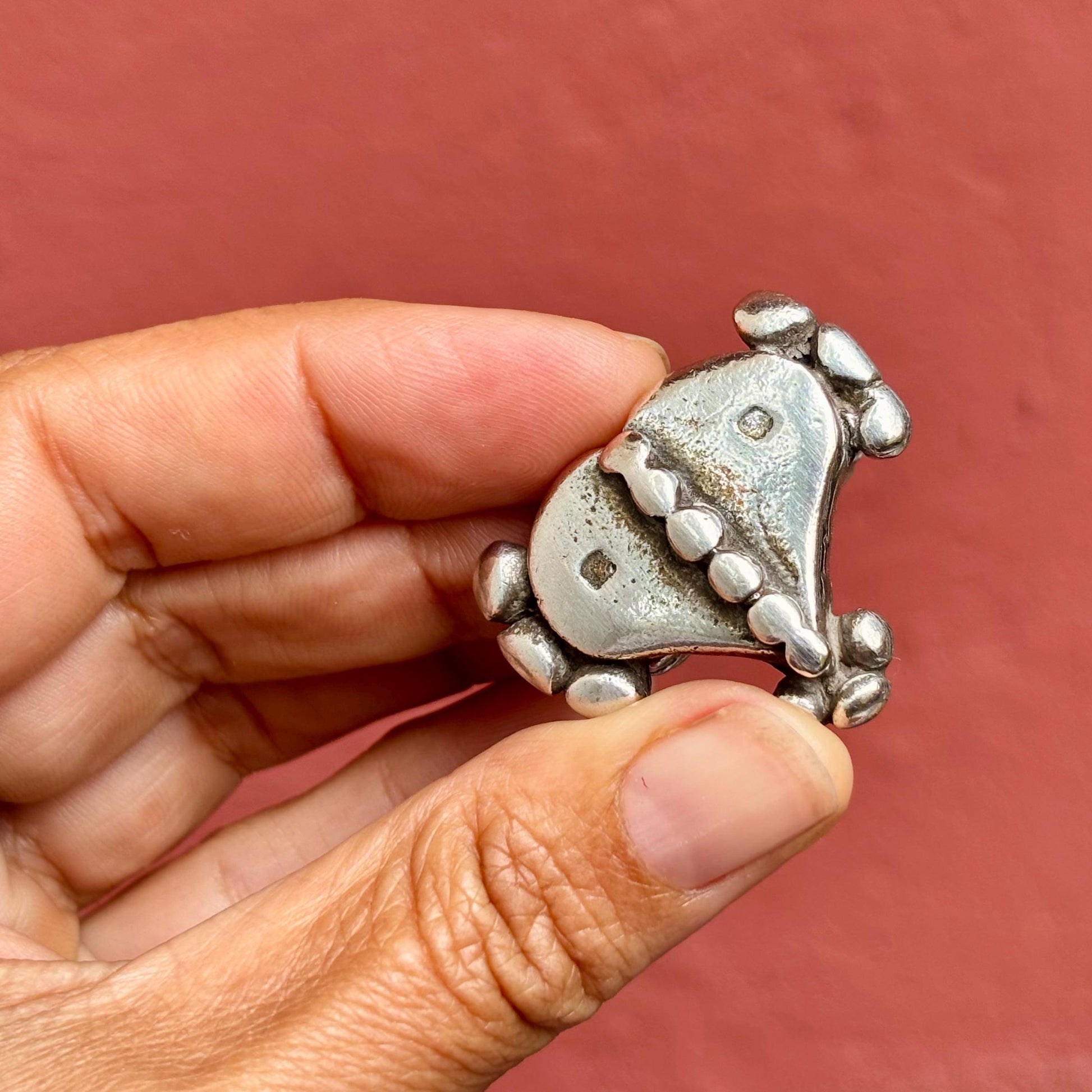 Anillo grande de corazón de plata Peul Fulani, Anillo de declaración antiguo Sahel Mali, Joya africana tribal étnica, Anillo Magreb Sahara, Regalo para hombre
