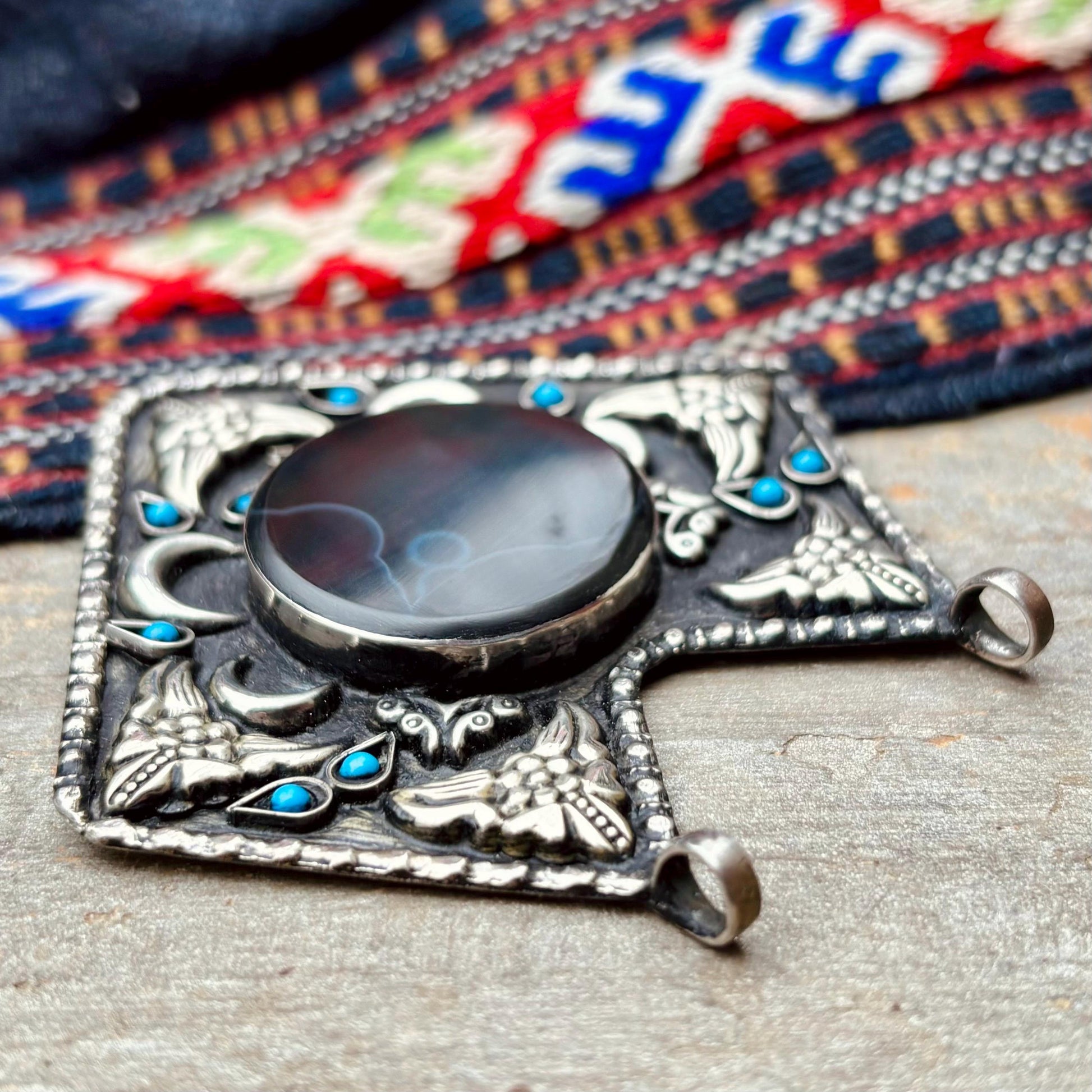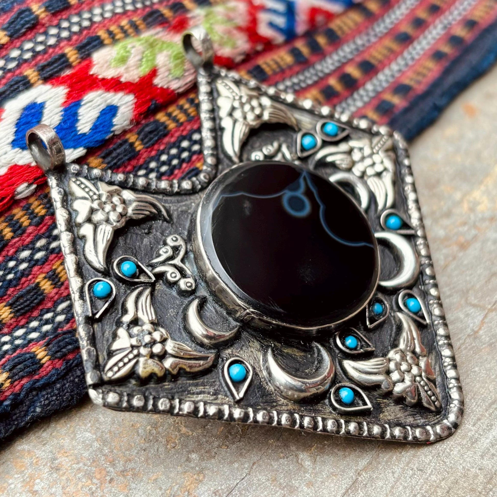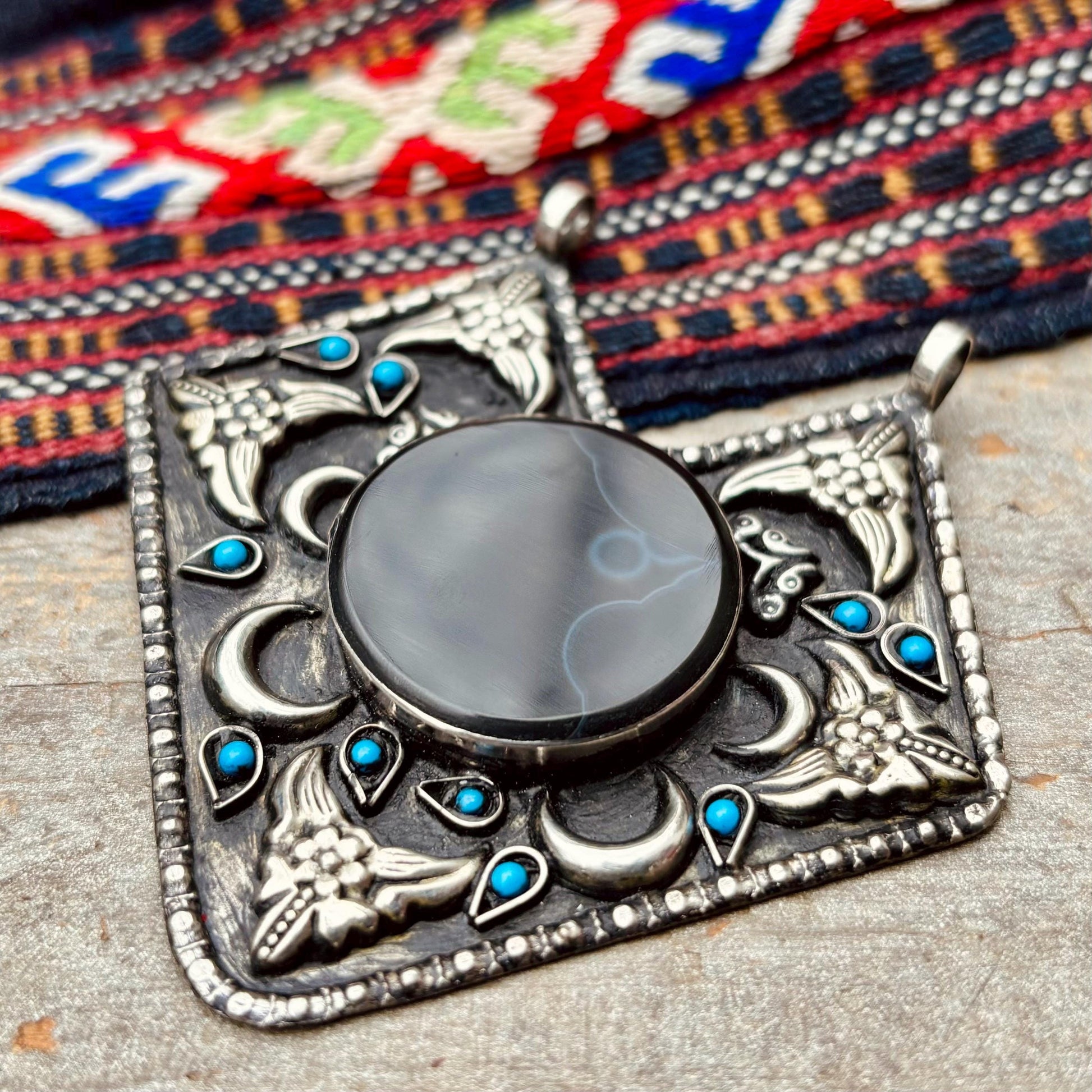 Colgante oriental de ágata negra, collar étnico vintage, joya tradicional, colgante tribal gitano, collar afgano con colgante étnico boho.
