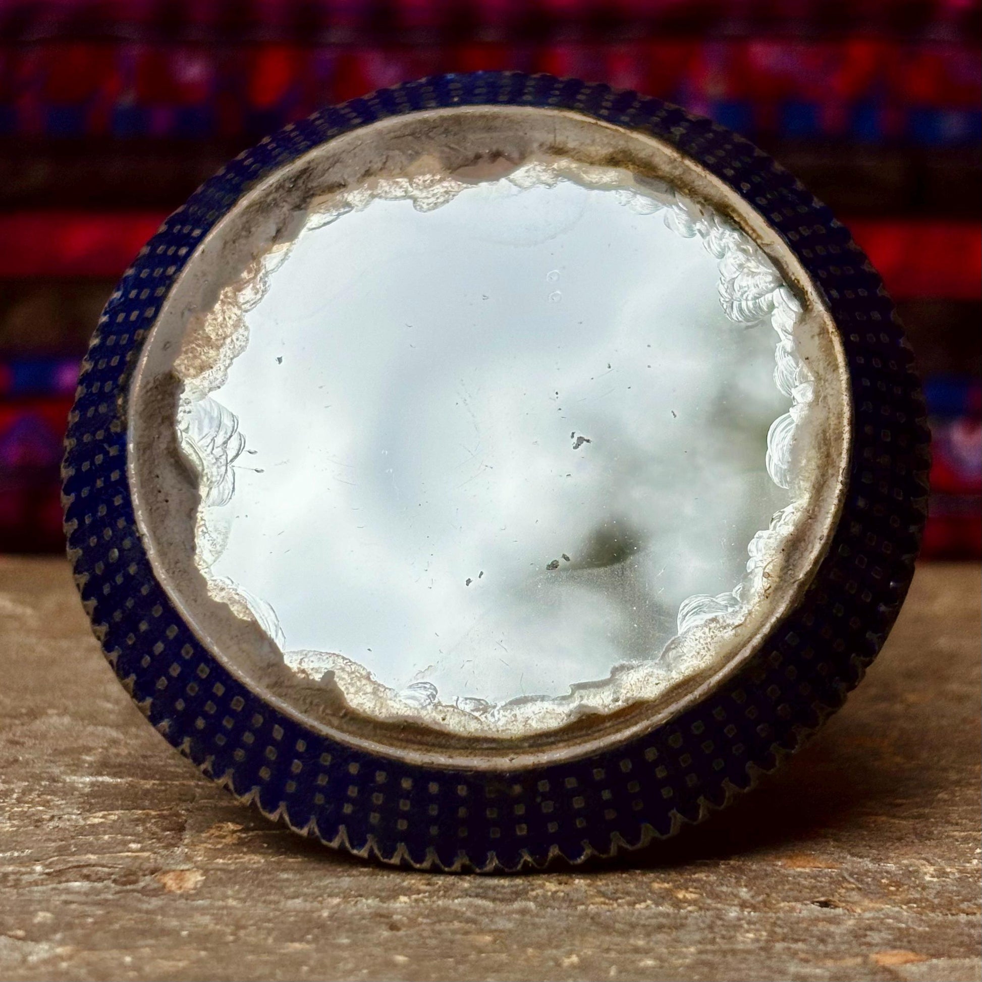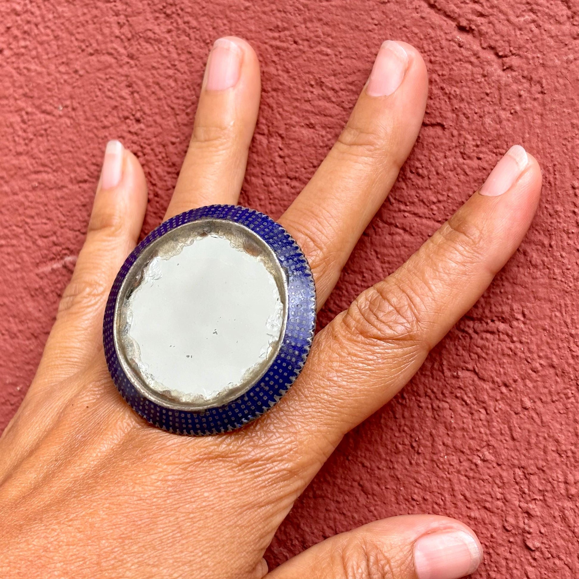 Bague Argent Émaux Bleus Multan Pakistan - Grande Bague Ronde Tribale Miroir Ethnique Vintage Collection