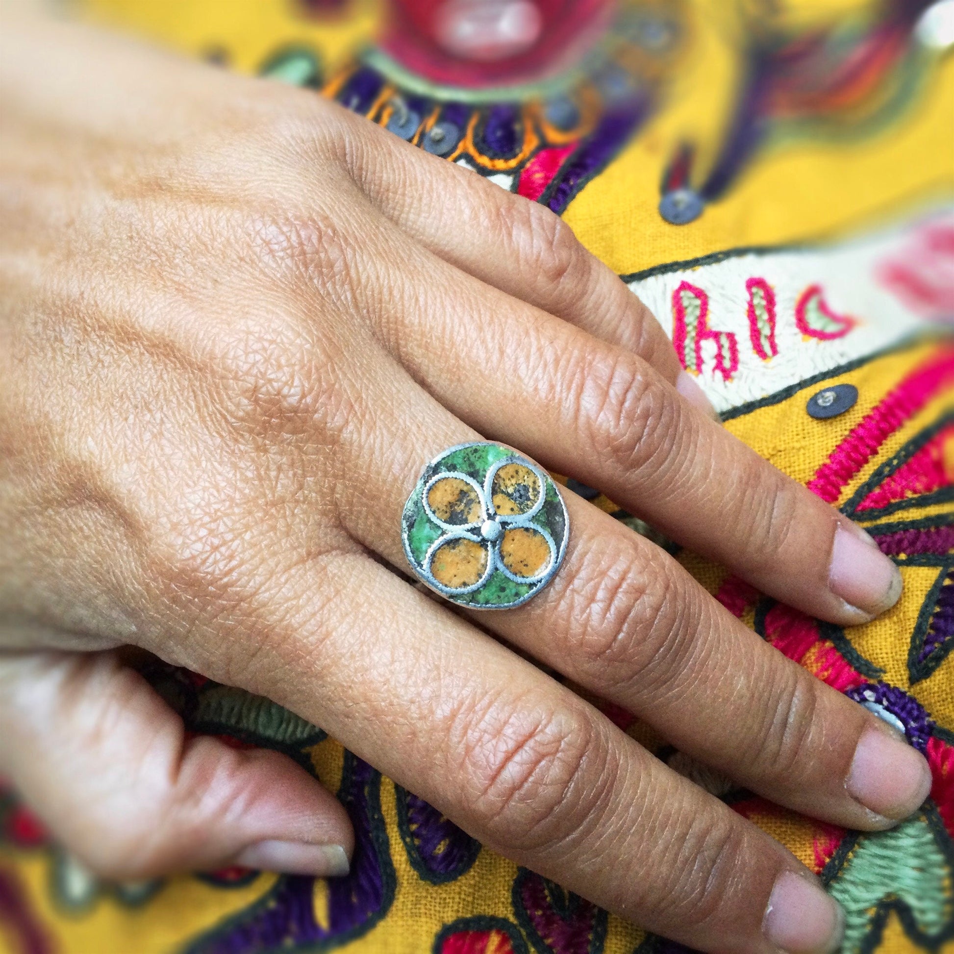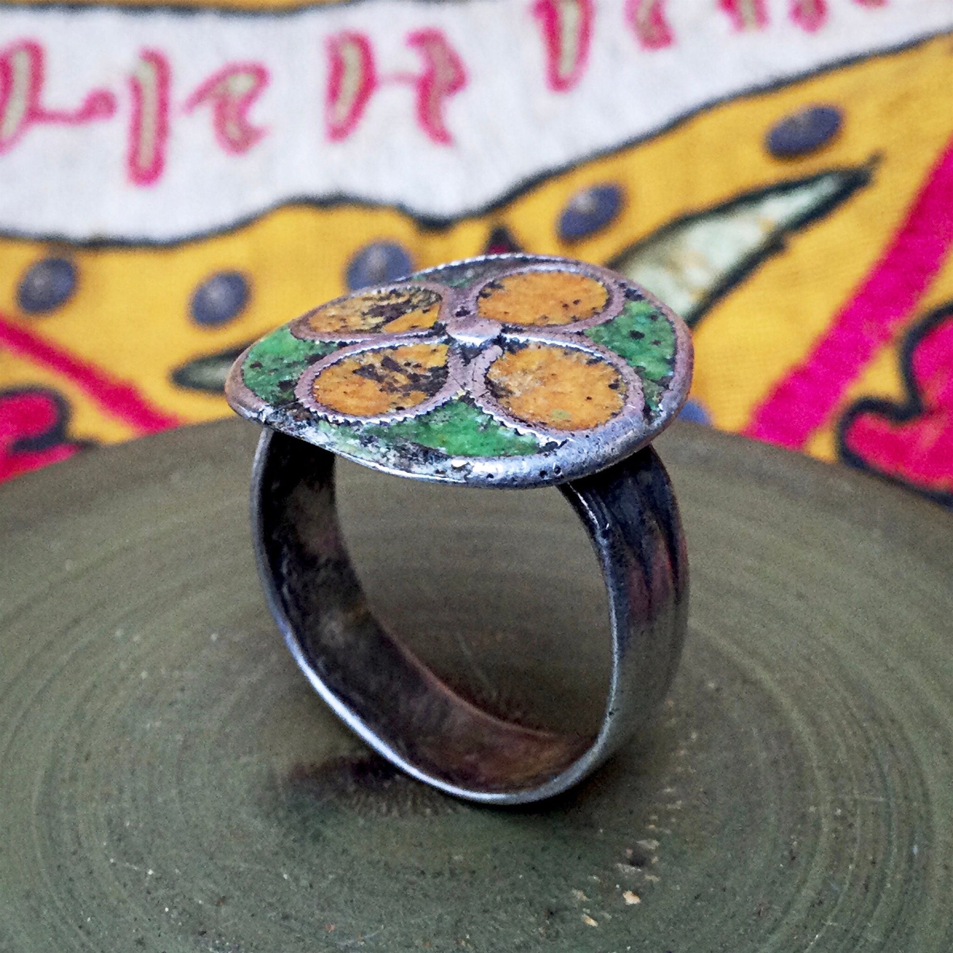 Bague Berbère, Bague tribale ancienne, Bague émaux berbères, Bijoux Berbères, Bague ethnique, Bague émaillée vintage, Bague Maroc