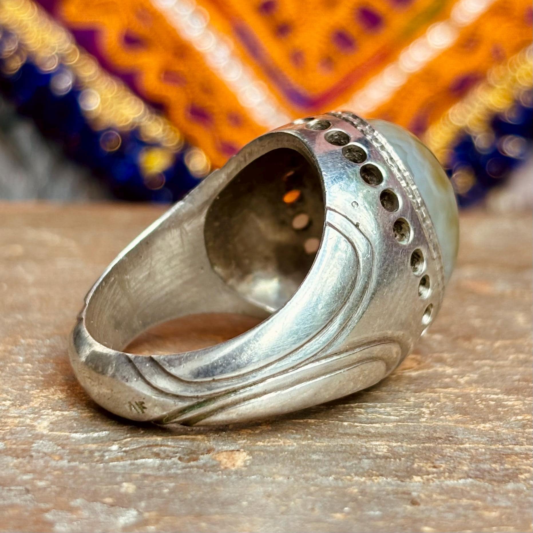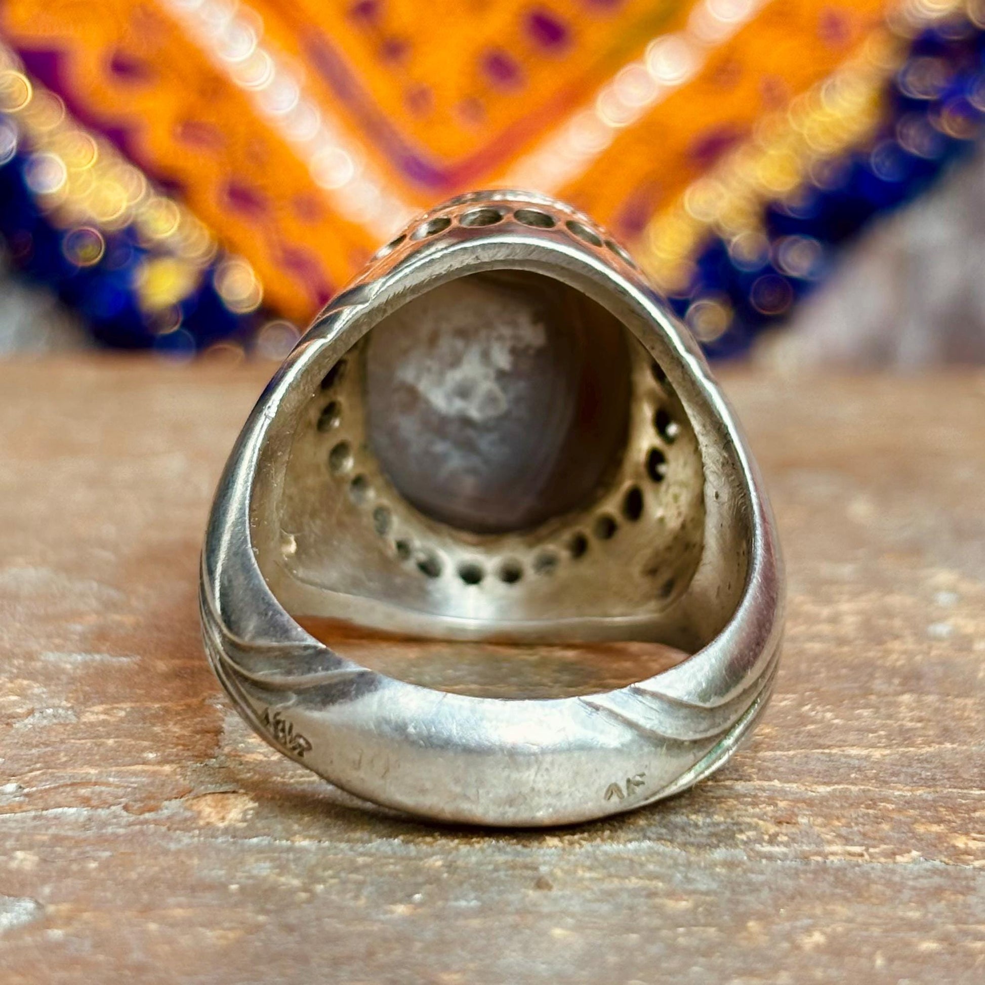 Bague d'homme argent agate Afghanistan, Bague orientale asiatique Aqeeq protection mauvais oeil, Bague ancienne pierre naturelle pour lui