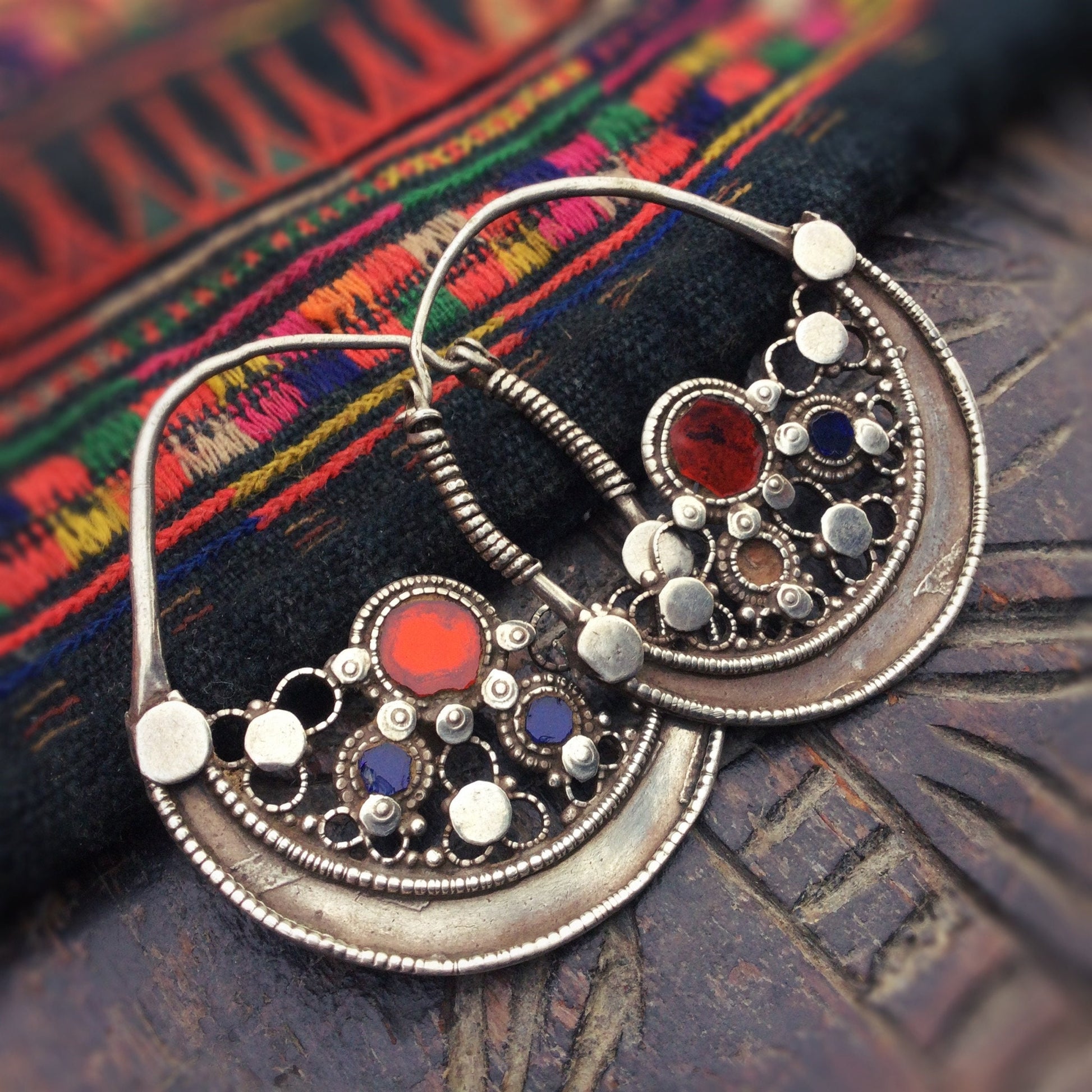 Boucles d'oreille tribales anciennes Pakistan Pashtun - Créoles antiques argent collection - Bijou ethnique Vvntage