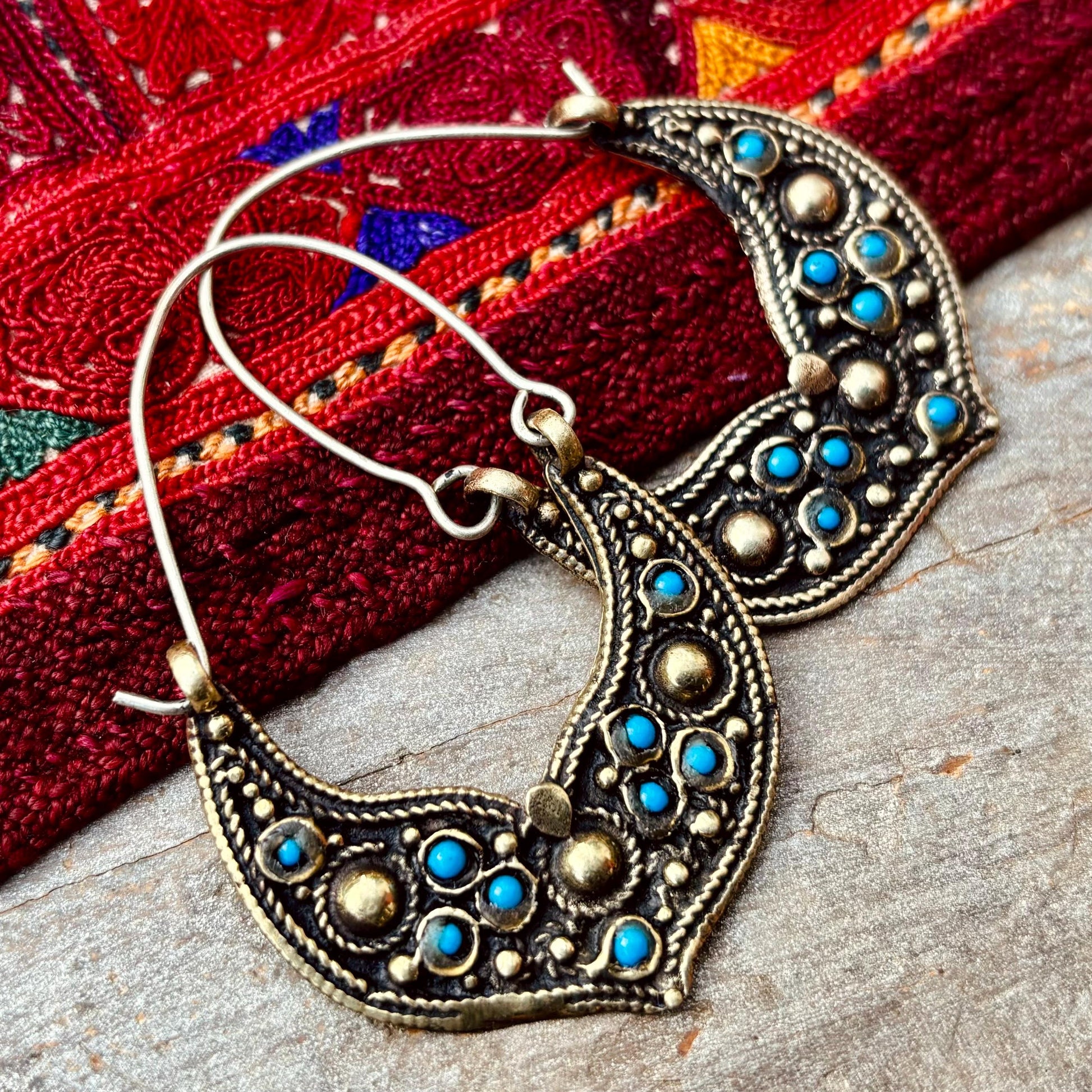Les bijoux afghans sont le témoignage vivant d'un savoir-faire millénaire transmis de génération en génération à travers les routes de la soie. Ces créoles s'inspirent des parures traditionnelles portées par les femmes des tribus nomades d'Afghanistan, notamment les Kuchi, Pashtun et Turkmènes.