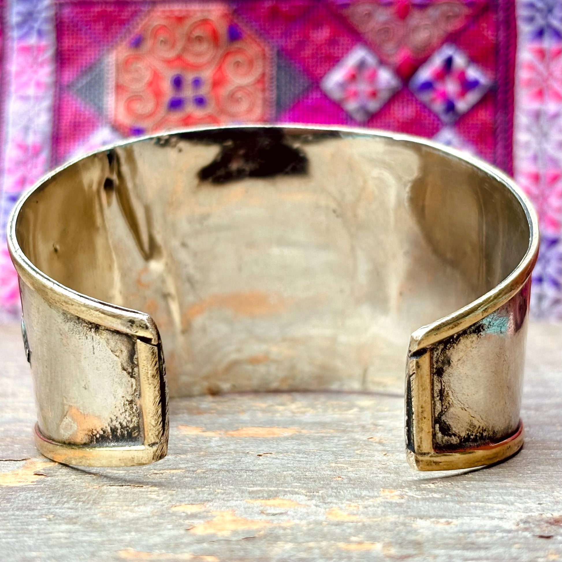 La tradition des bracelets manchettes remonte aux anciennes routes de la soie, où ces bijoux servaient également de monnaie d'échange et de symbole de richesse. Porter ce bracelet, c'est perpétuer cet héritage culturel fascinant et honorer le savoir-faire des artisans afghans.
