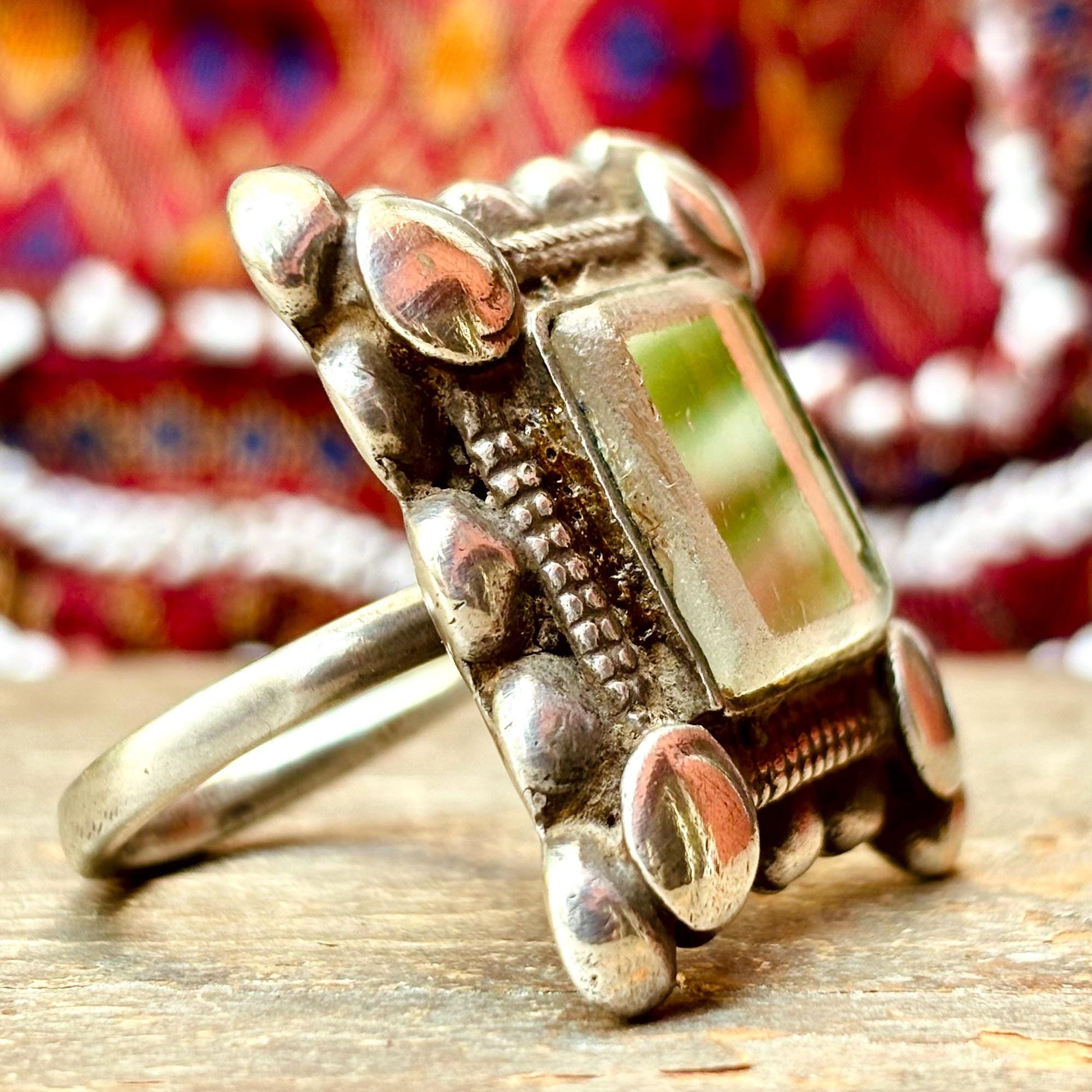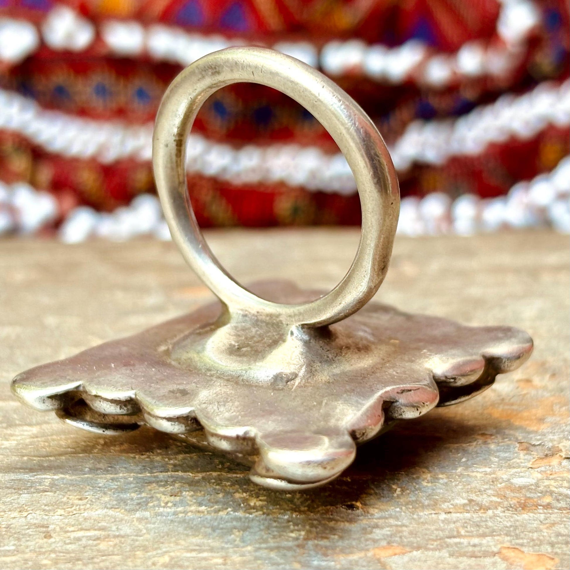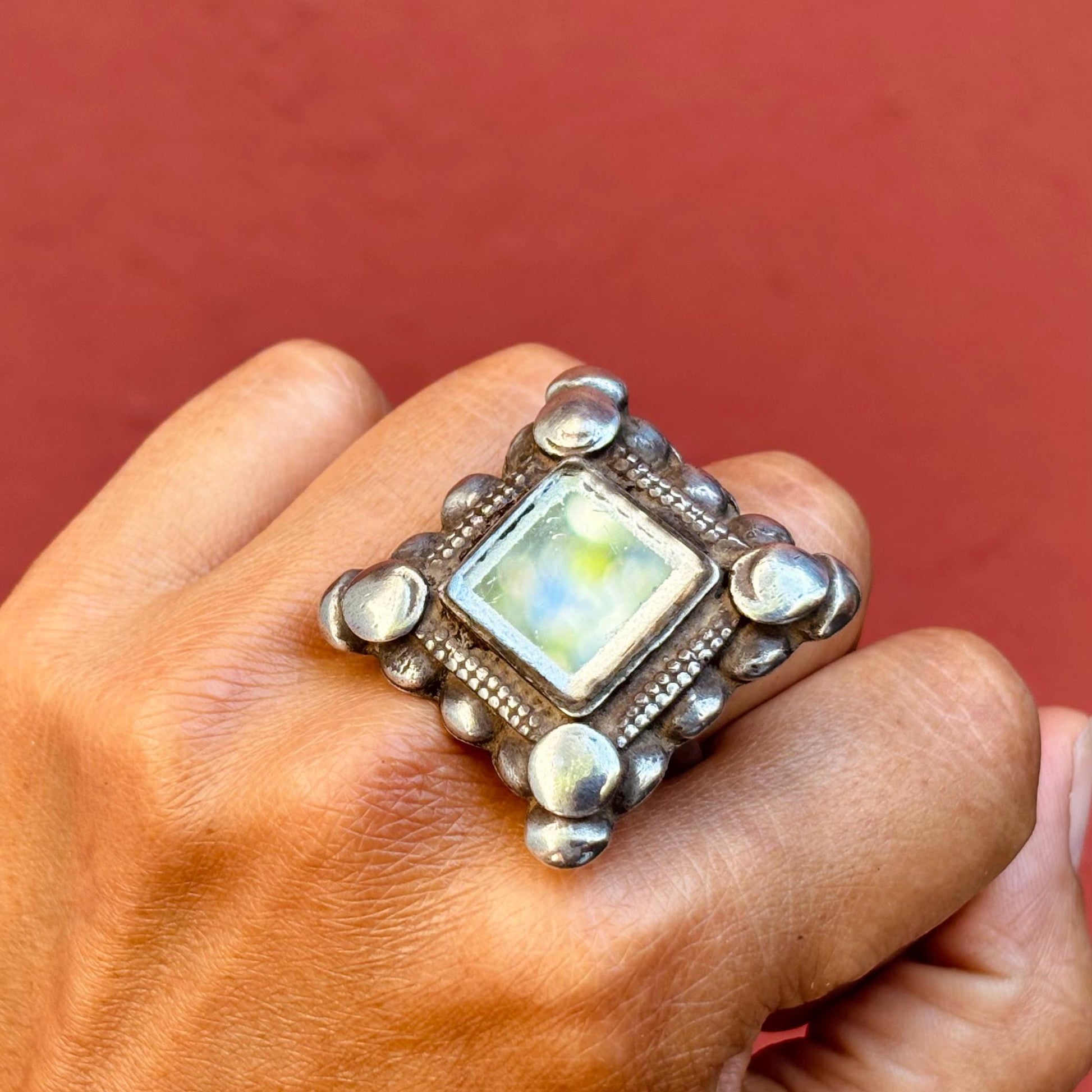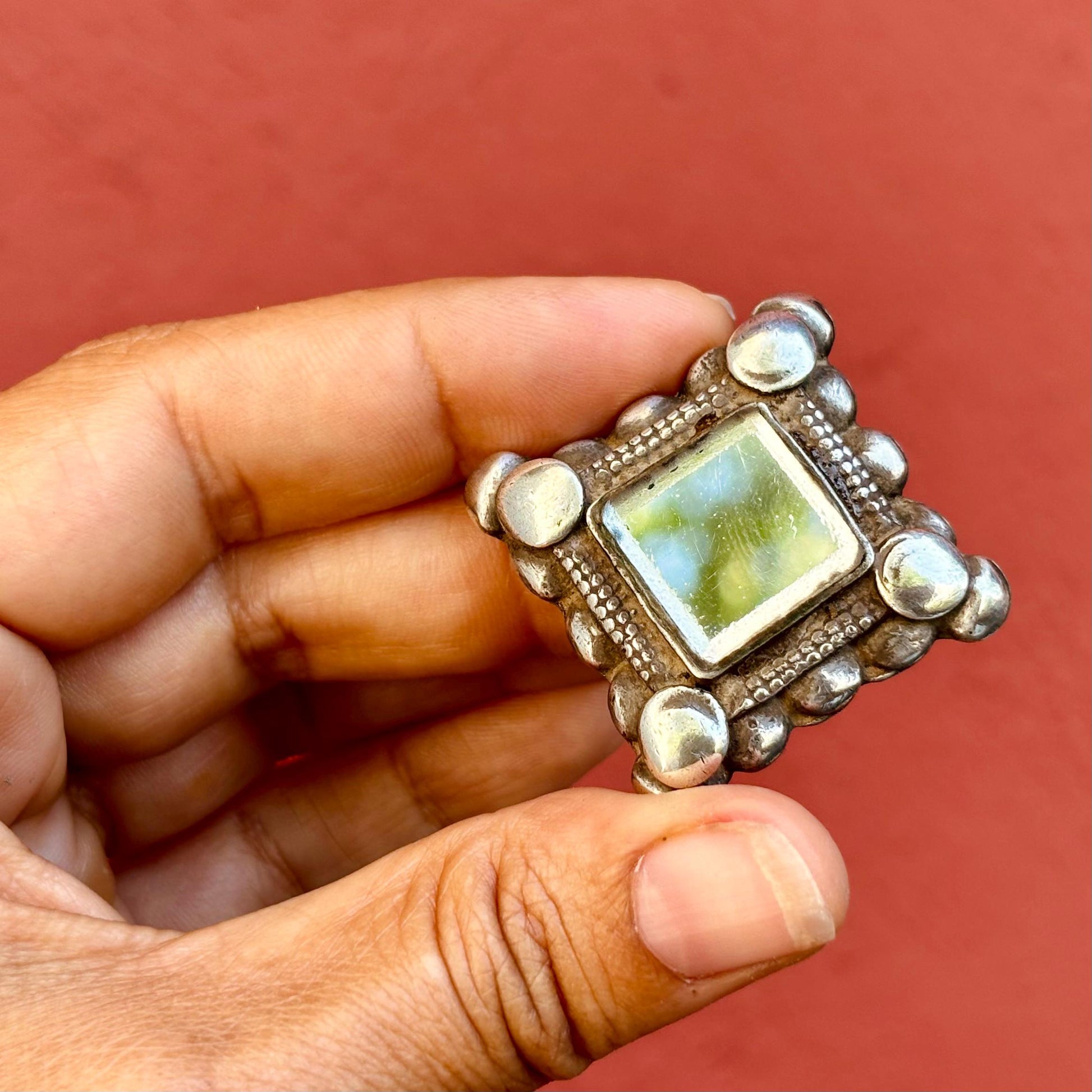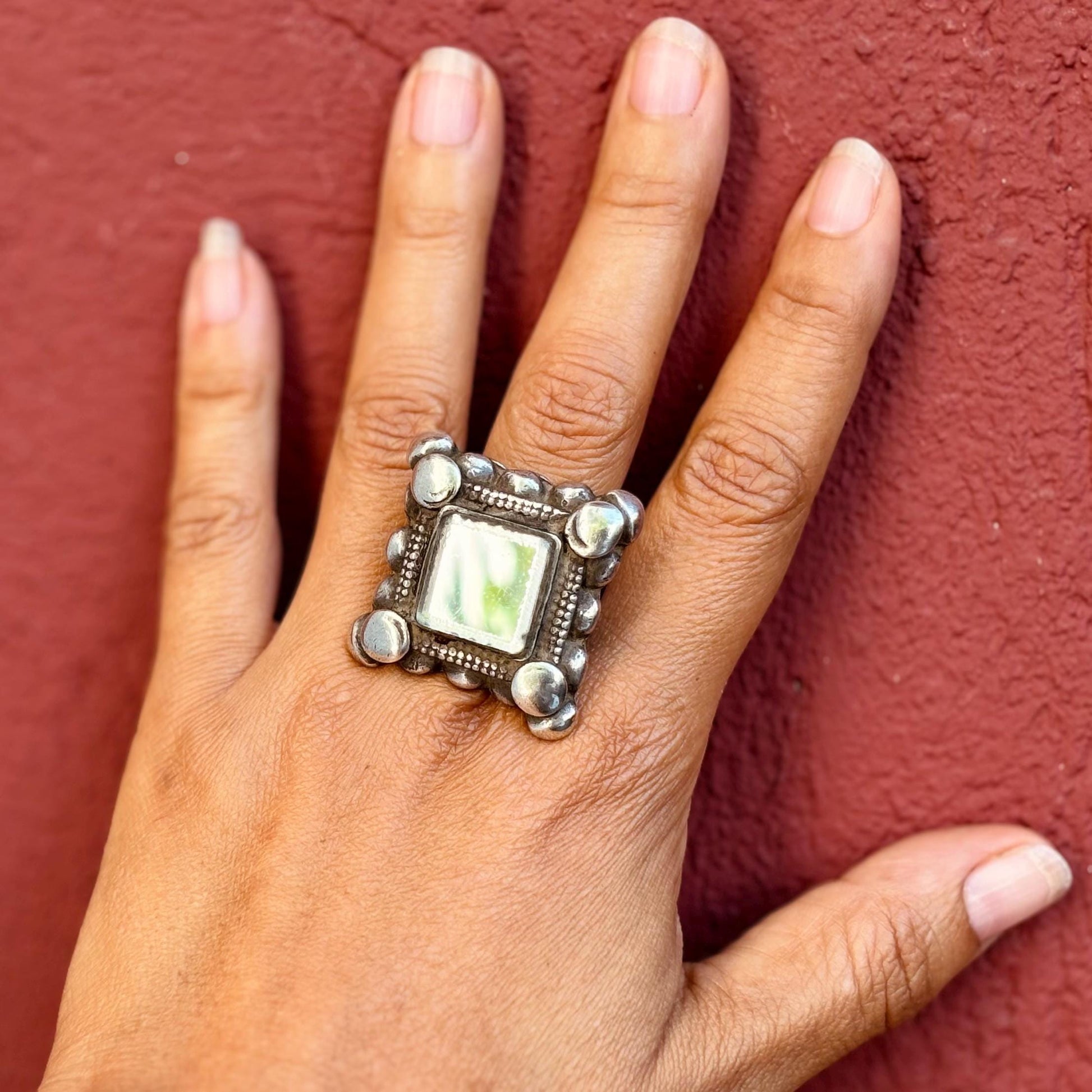 Grosse bague argent carrée boho chic, Bague tribale afghane miroir ancienne ethnique, Bague antique tribu nomade Pashtun, Cadeau pour femme