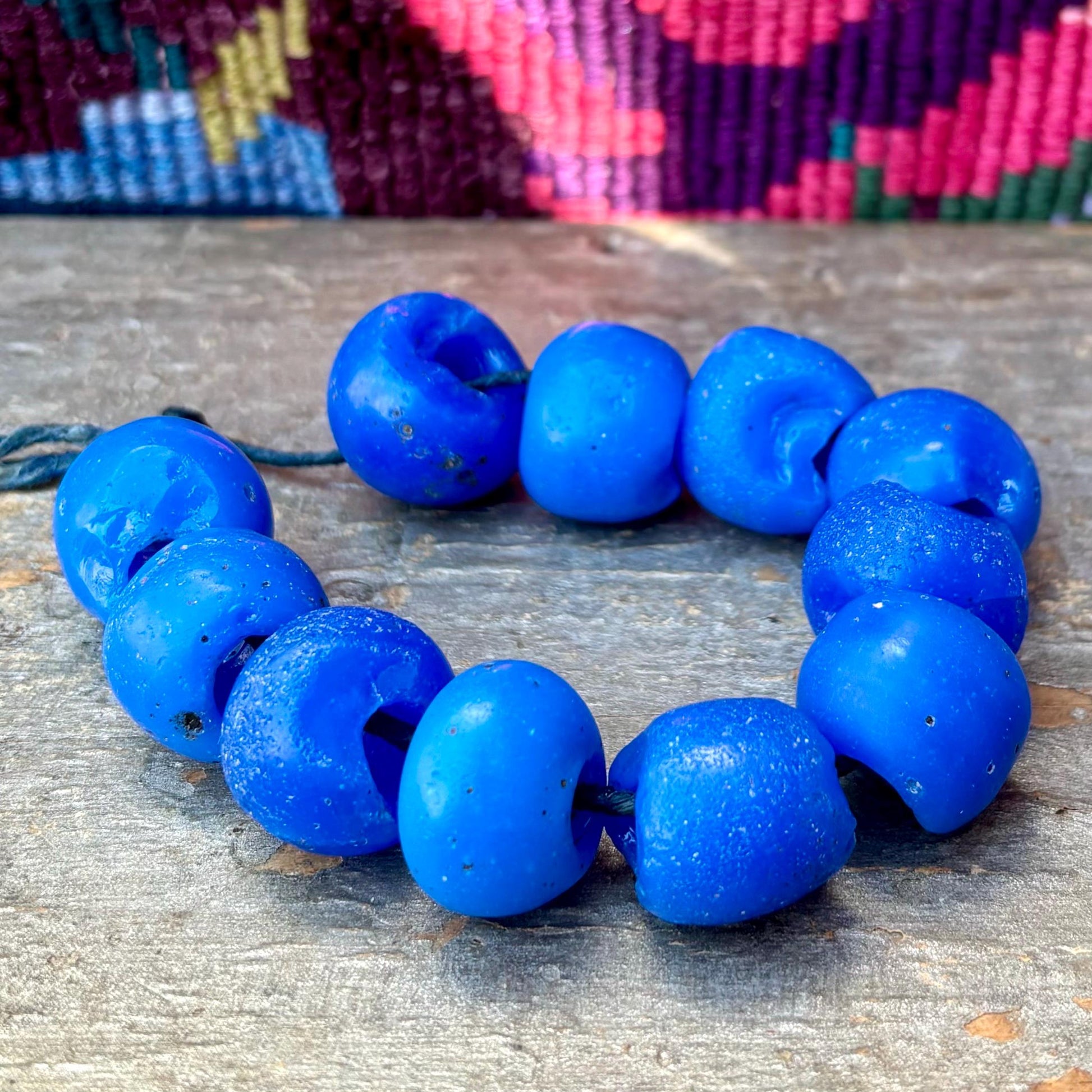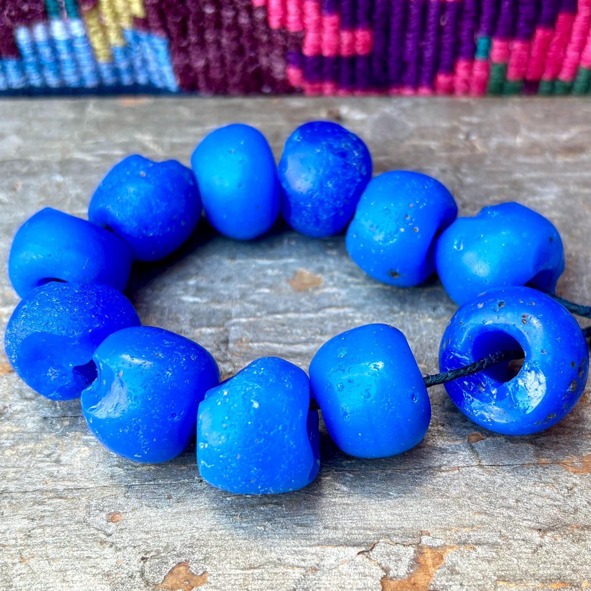 Grosses perles bleues anciennes, Perles de commerce africaines de collection, Verre bleu enroulé, Perles européennes antiques verre bleu vif