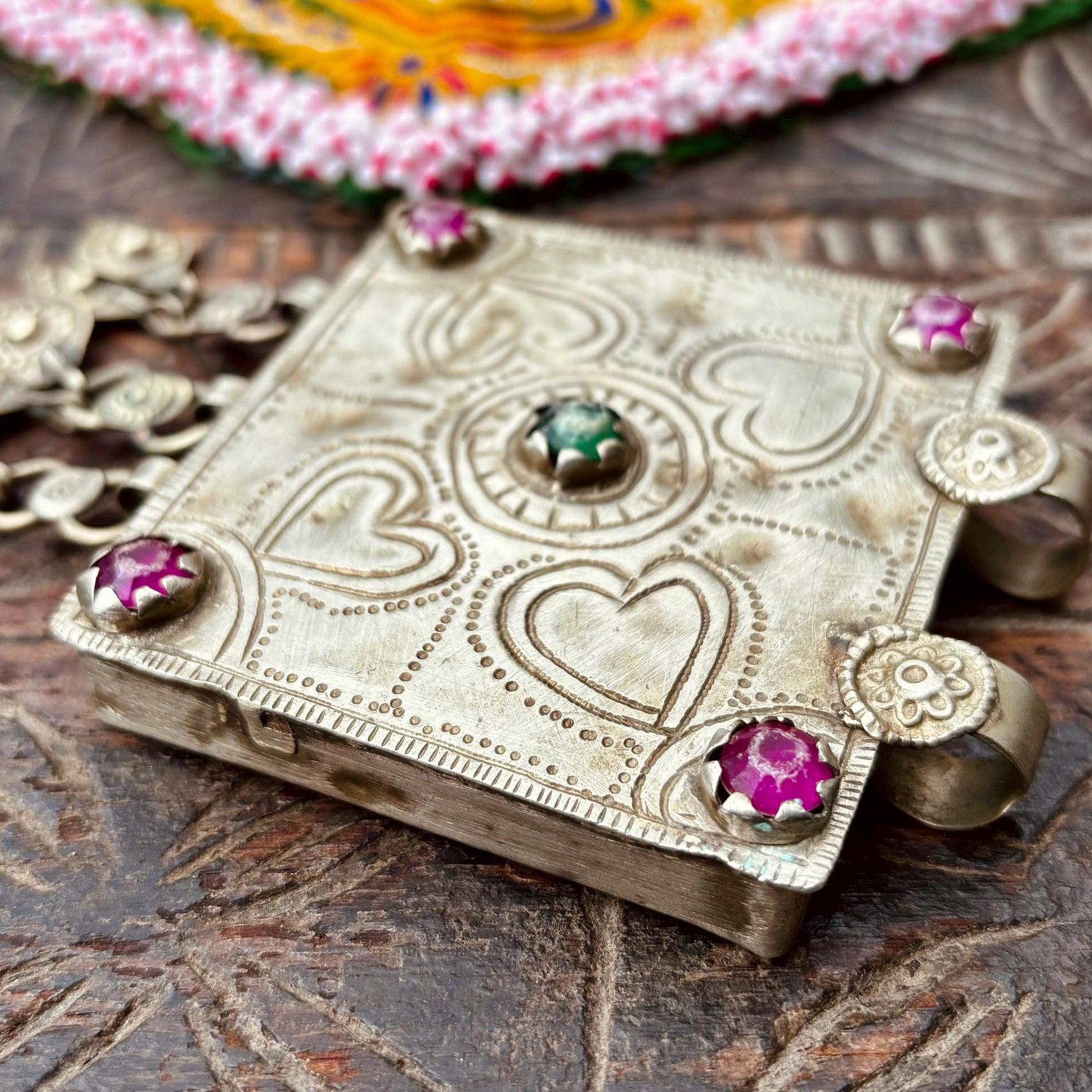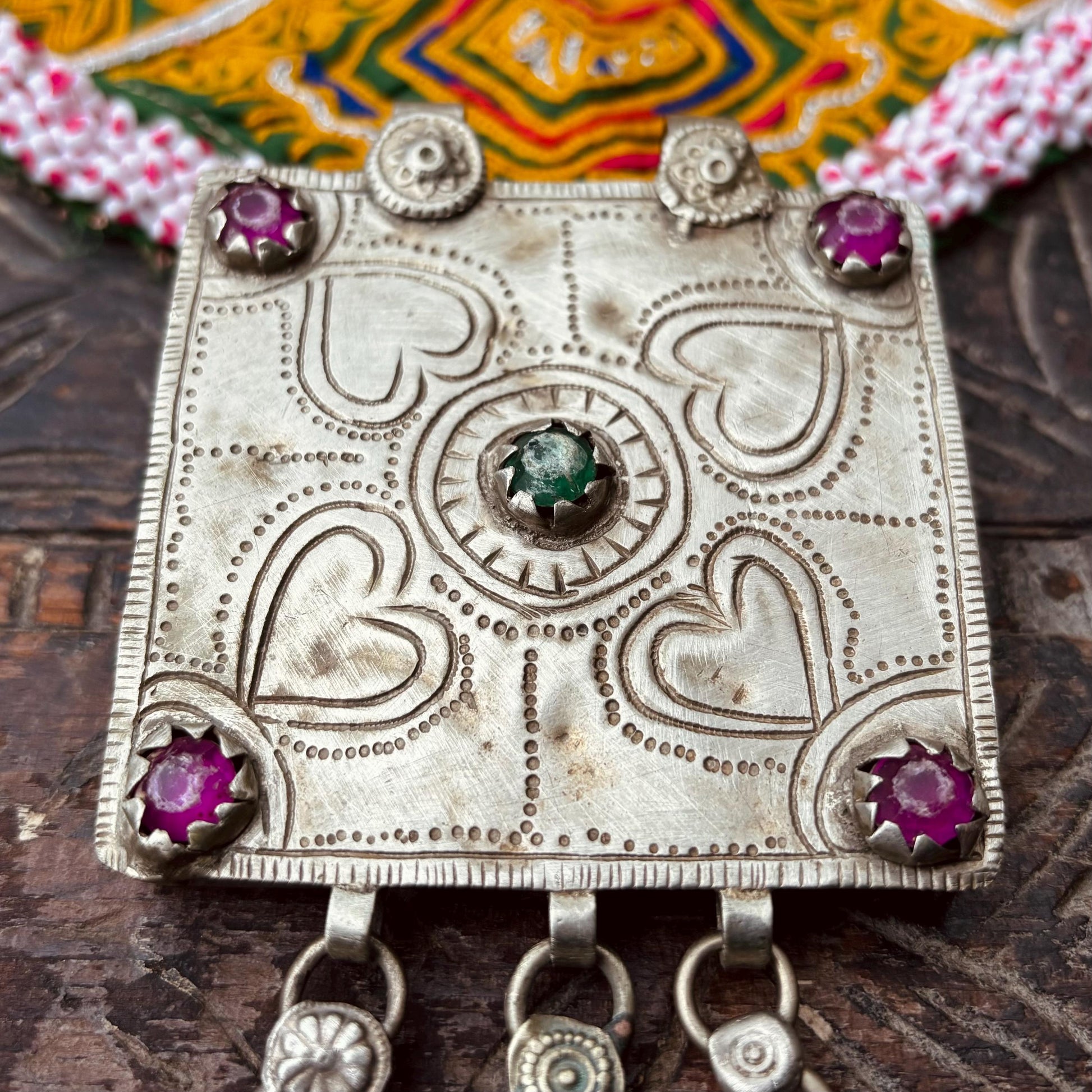 Pendentif tribal carré gravé, bijou ethnique Afghan danse orientale, Pendentif collier vintage Cachemire Bijou asiatique gypsy boho festival