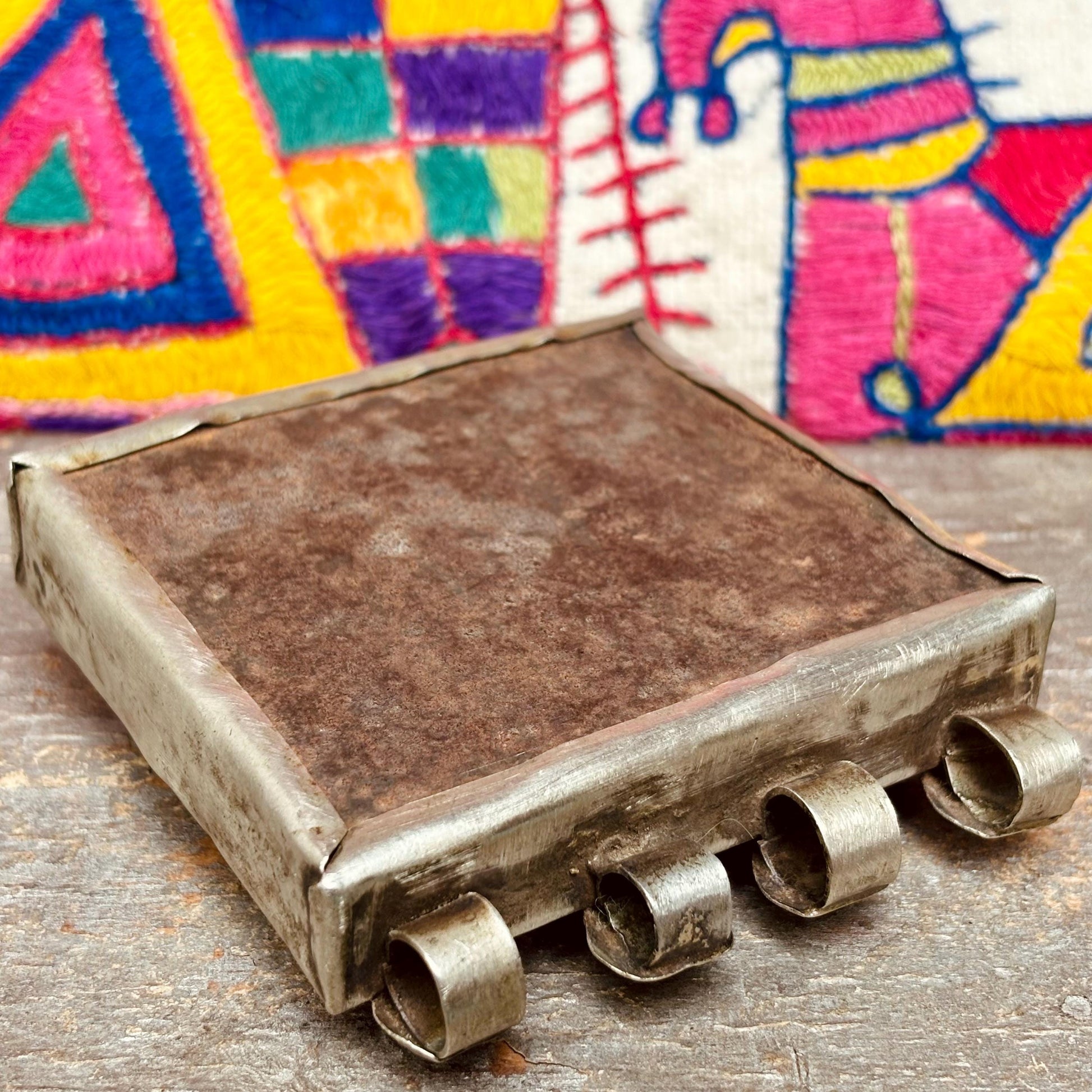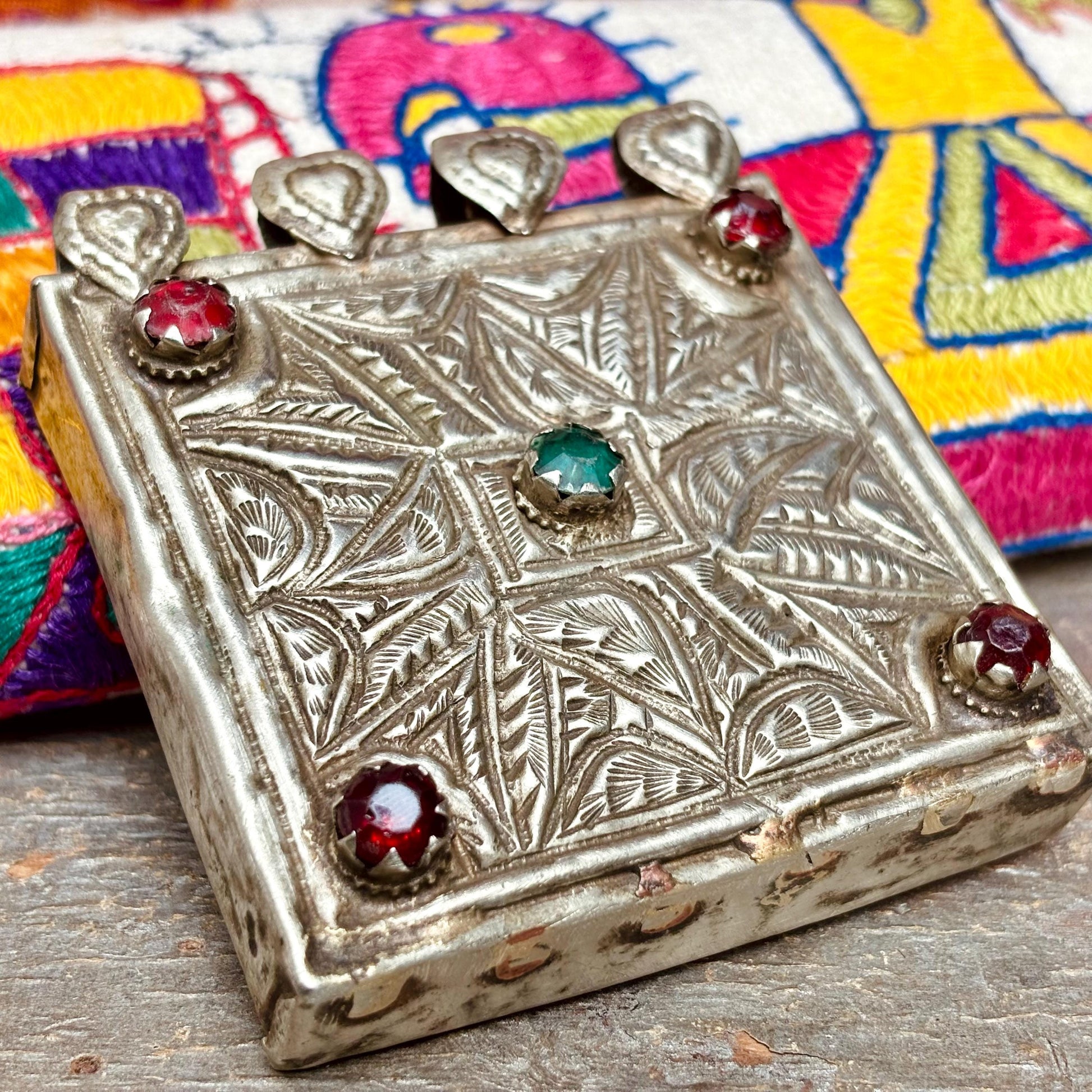 Pendentif tribal carré gravé, bijou ethnique Afghan danse orientale, Pendentif collier vintage Cachemire Bijou asiatique gypsy boho festival