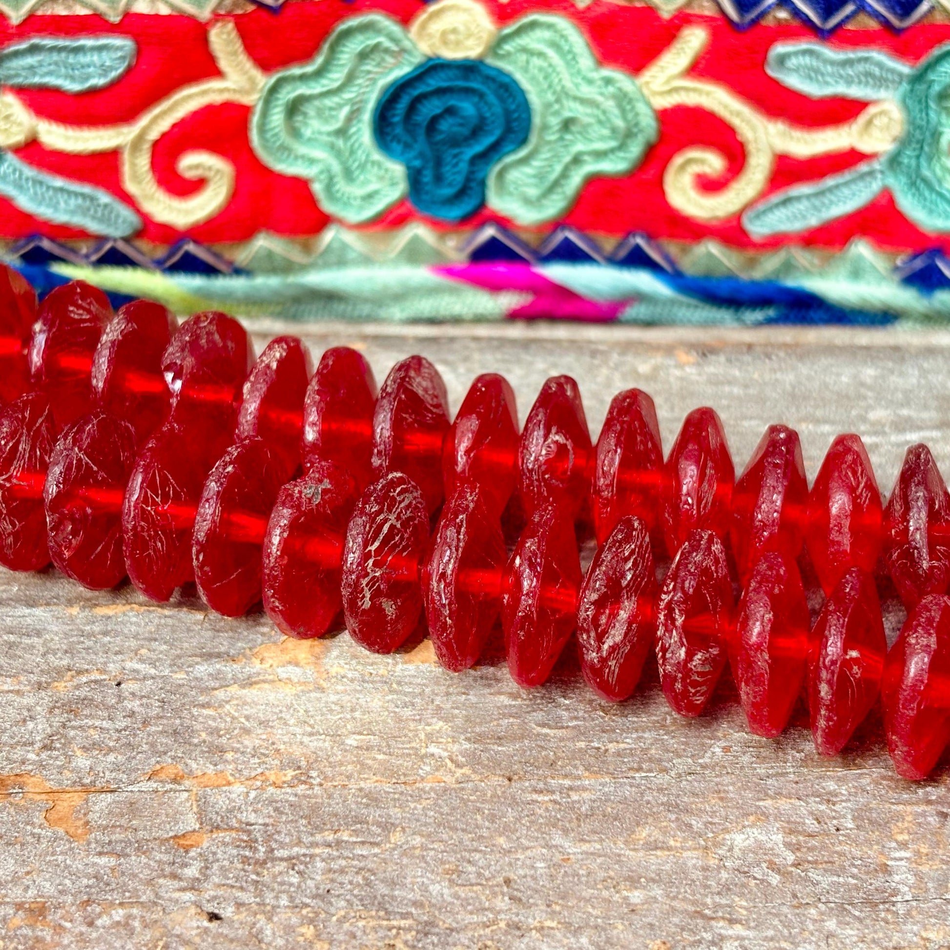 Perles de commerce vaseline rouge soucoupe, Perles antiques en verre de Bohême, Perles anciennes africaines, Perles translucides vintage