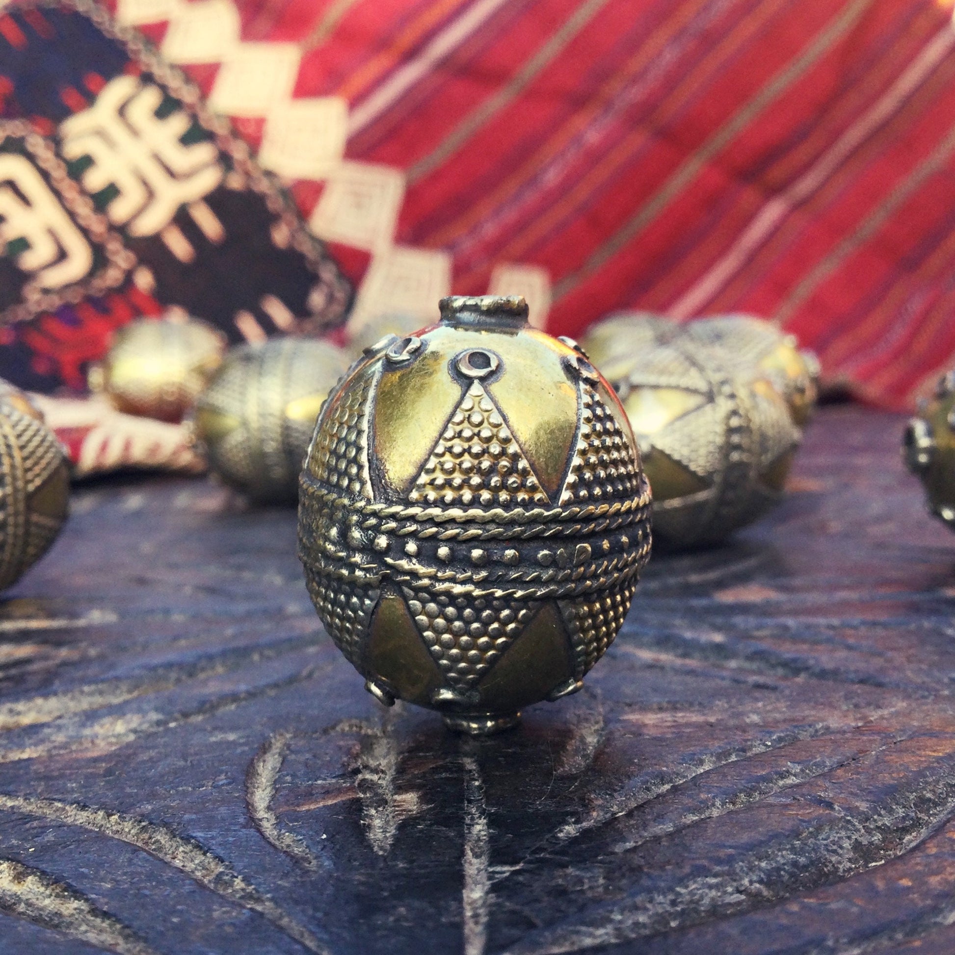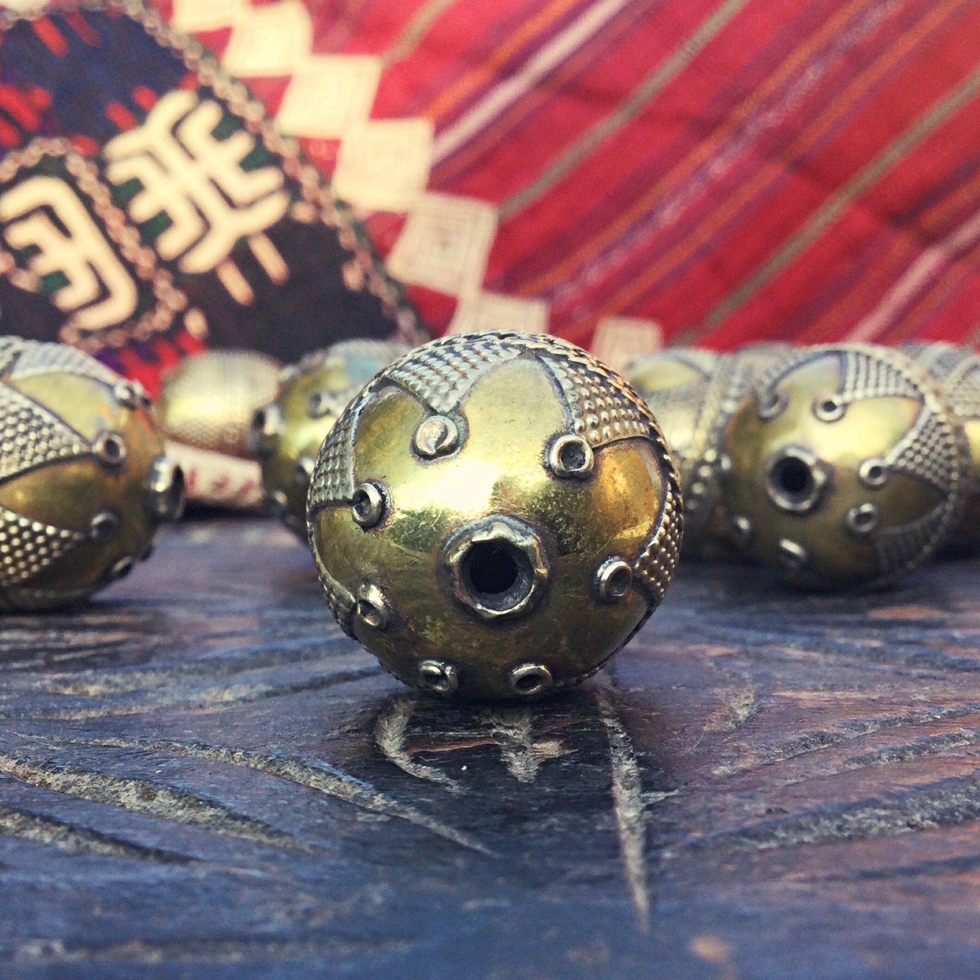 Perles Turkmènes, Perles tonneaux métal doré granulation, Grosses perles afghanes vintage, Perles ethniques, Collier tribal, Création bijoux